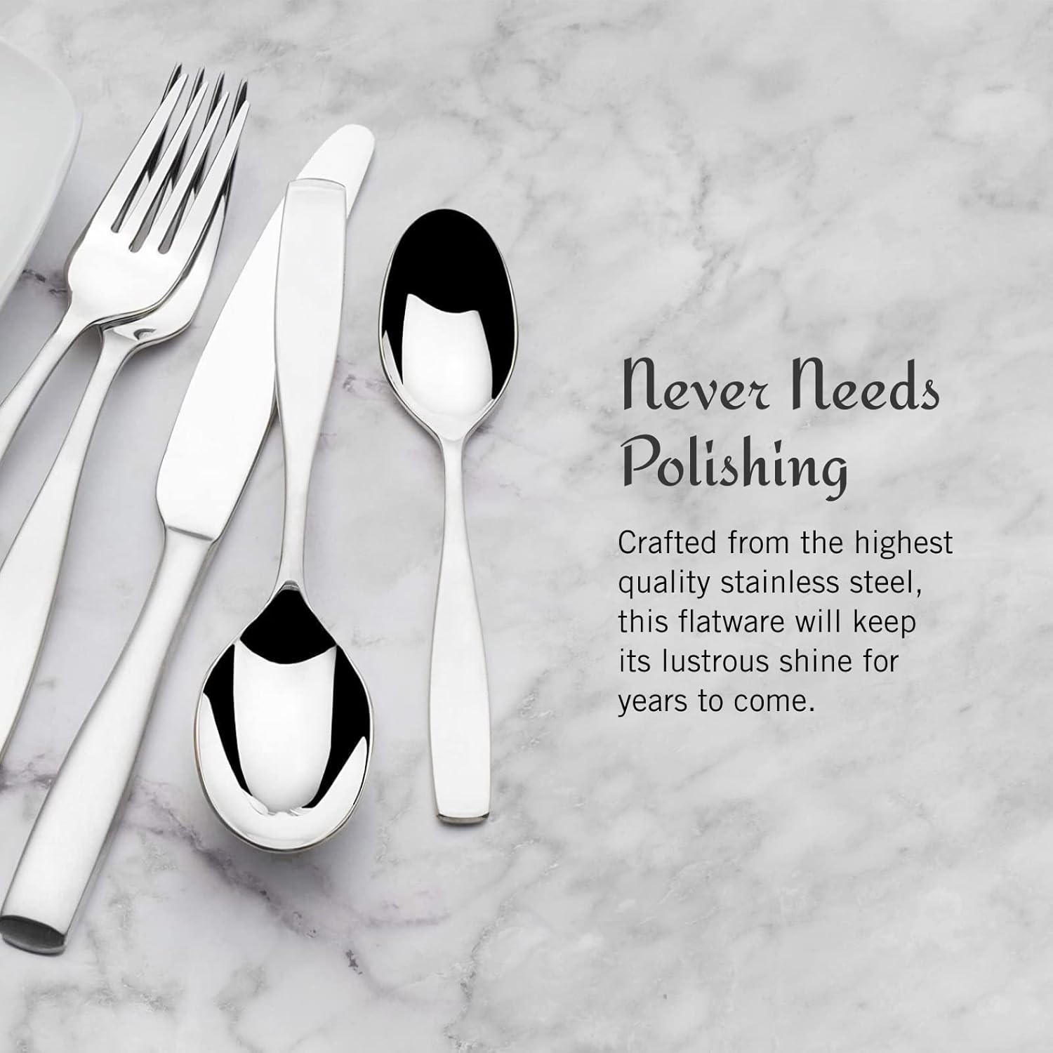 Mikasa Satin Loft 65-Piece Flatware Set for 12, 18/10 Stainless Steel Silverware with Forks, Knives, Spoons, and Serving Utensils, Durable and Elegant Design