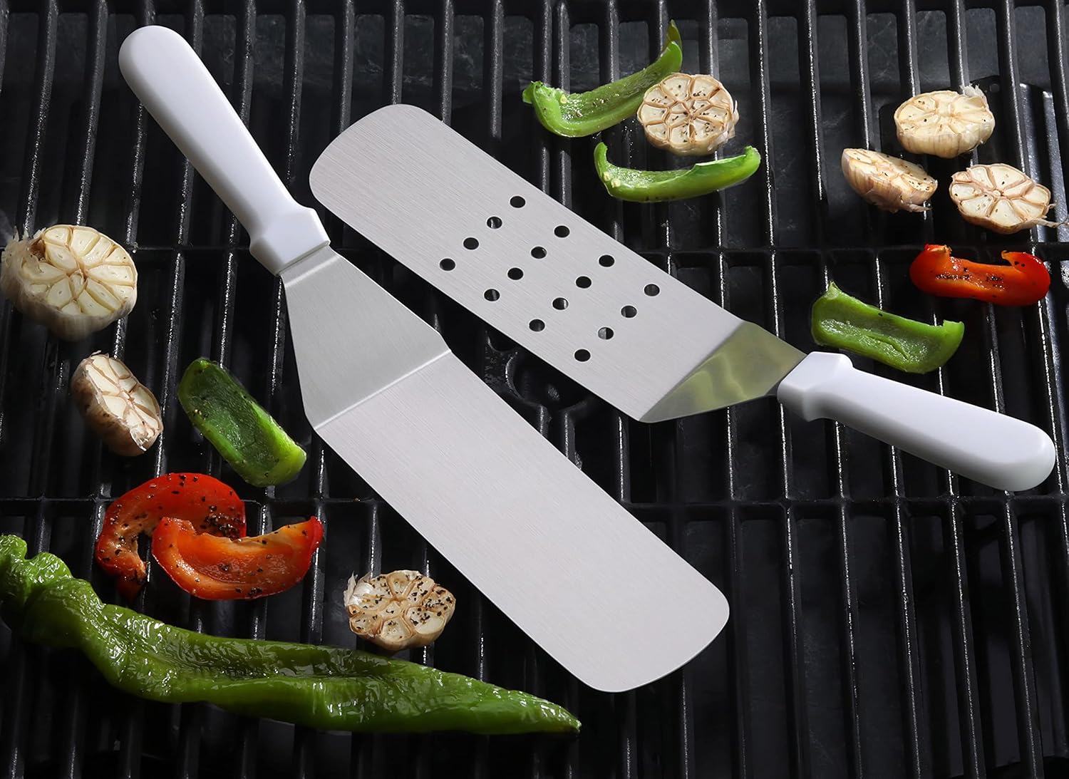 - Exceptionally well crafted solid and perforated turner set|Commercial quality can be used In restaurants food shops catering halls Etc.|Stainless steel blade with wooden handle securely riveted|Easy to clean and hand wash