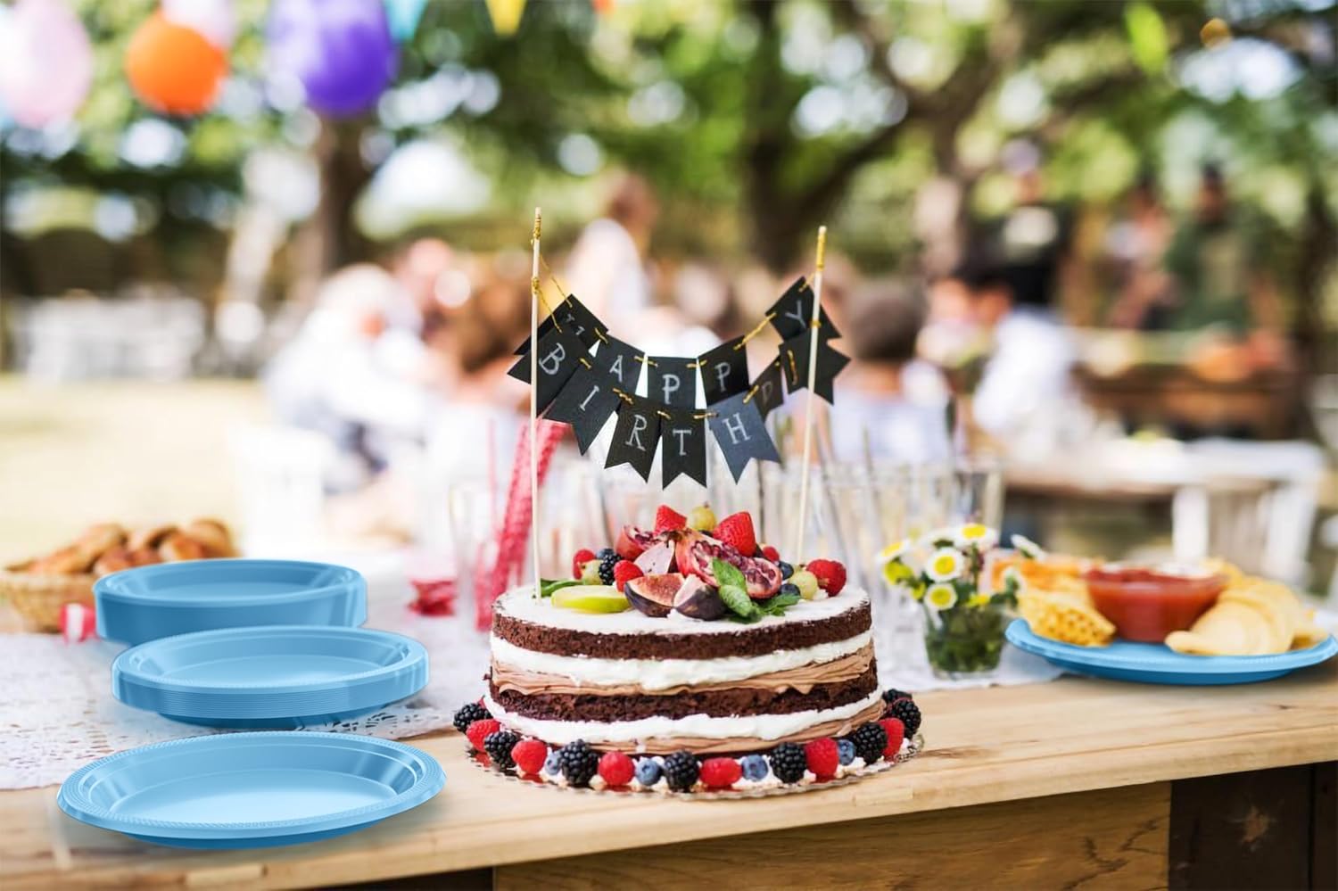 - Includes: Each pack comes with 100 Light Blue 9 inch dinner plates. These plates may be used as dinner plates or cake plate and also make a great use as picnic supplies. Having these will complete your plastic dinnerware collection.