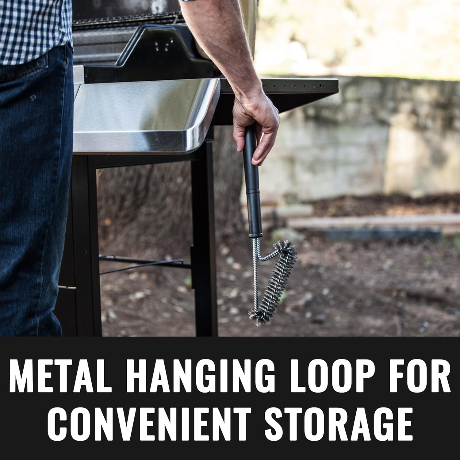 Grillaholics Essentials Grill Brush Steel - Triple Machine Tested for Safety - Stainless Steel Wire Grill Brush for Deep Grill Cleaning - Lifetime Manufacturers Warranty