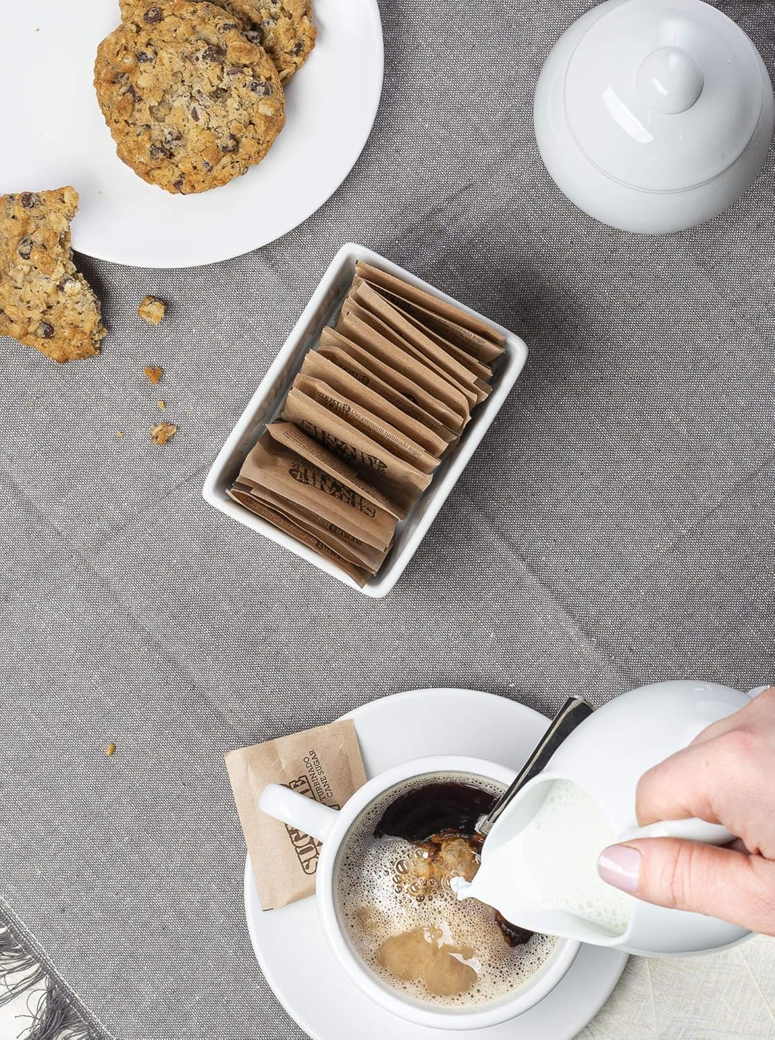 - Ideal Measurement: Just enough cream and sugar are held in a compact form that fits perfectly into any kitchen surface. The pitcher contains 14 ounces, the sugar dish holds 9 ounces, and the packet container carries 8 ounces