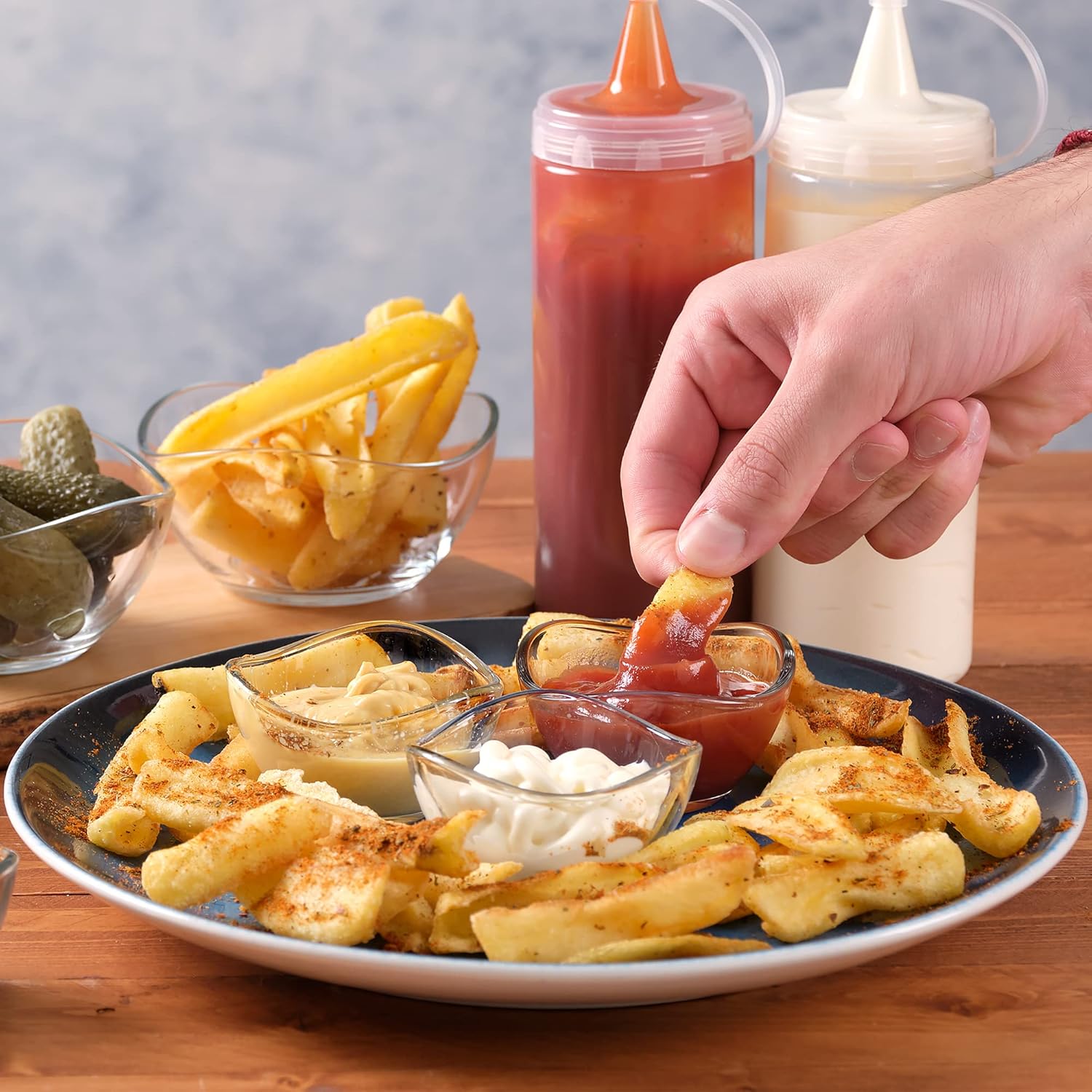 - Special Design: This clear sauce bowls tackles kitchen prep and tableside serving with clarity, practicality and, above all, stylish simplicity. Its clear design allows you to see exactly what you put into each bowl, avoiding confusion. Each mini bowl fits into your palm for convenient usage. Capacity: 2 ¼ ounce, Height: 1.6 inches, Mouth Diameter: 2.75 Inch