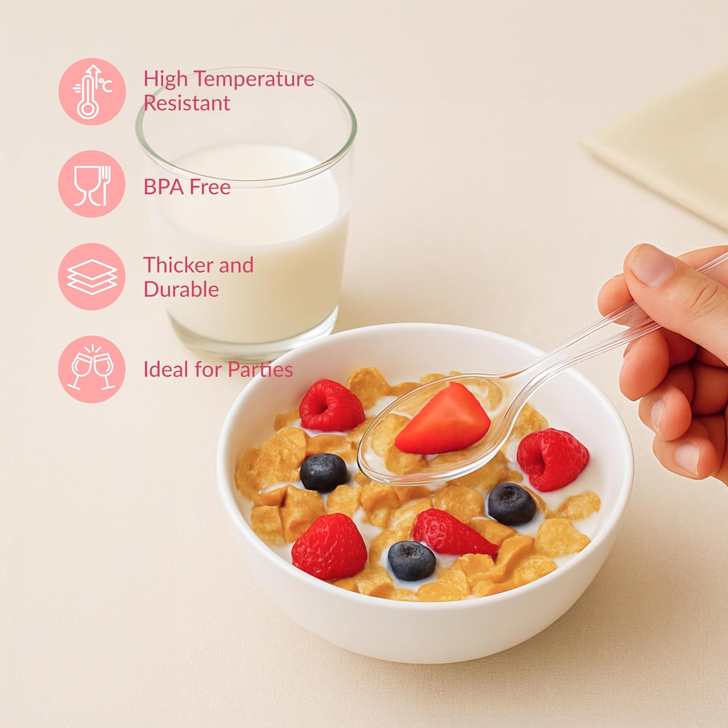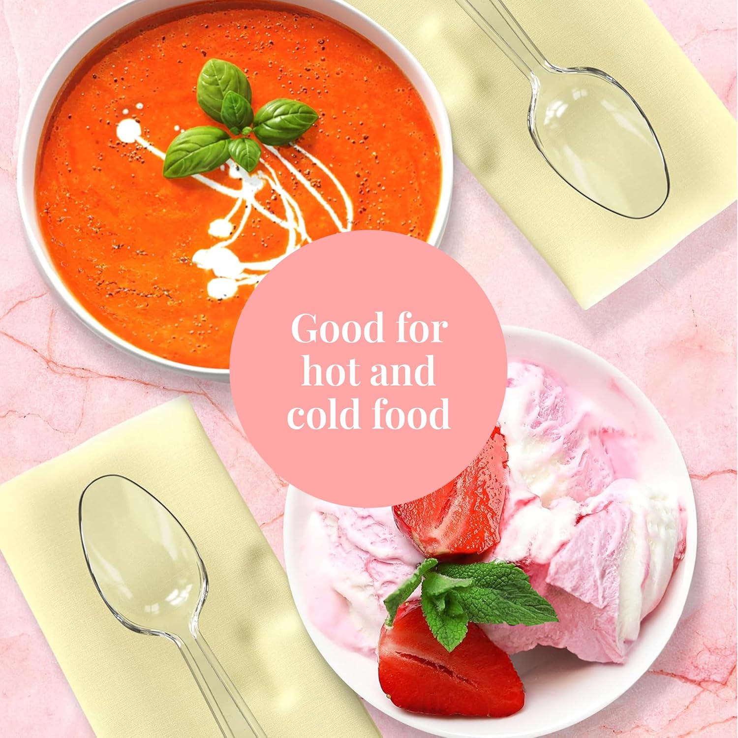 - Clear Plastic Spoons for Every Event: Whether hosting weddings, birthdays, office parties or catering events, these 6-inch heavy duty spoons offer an elegant and practical disposable flatware solution