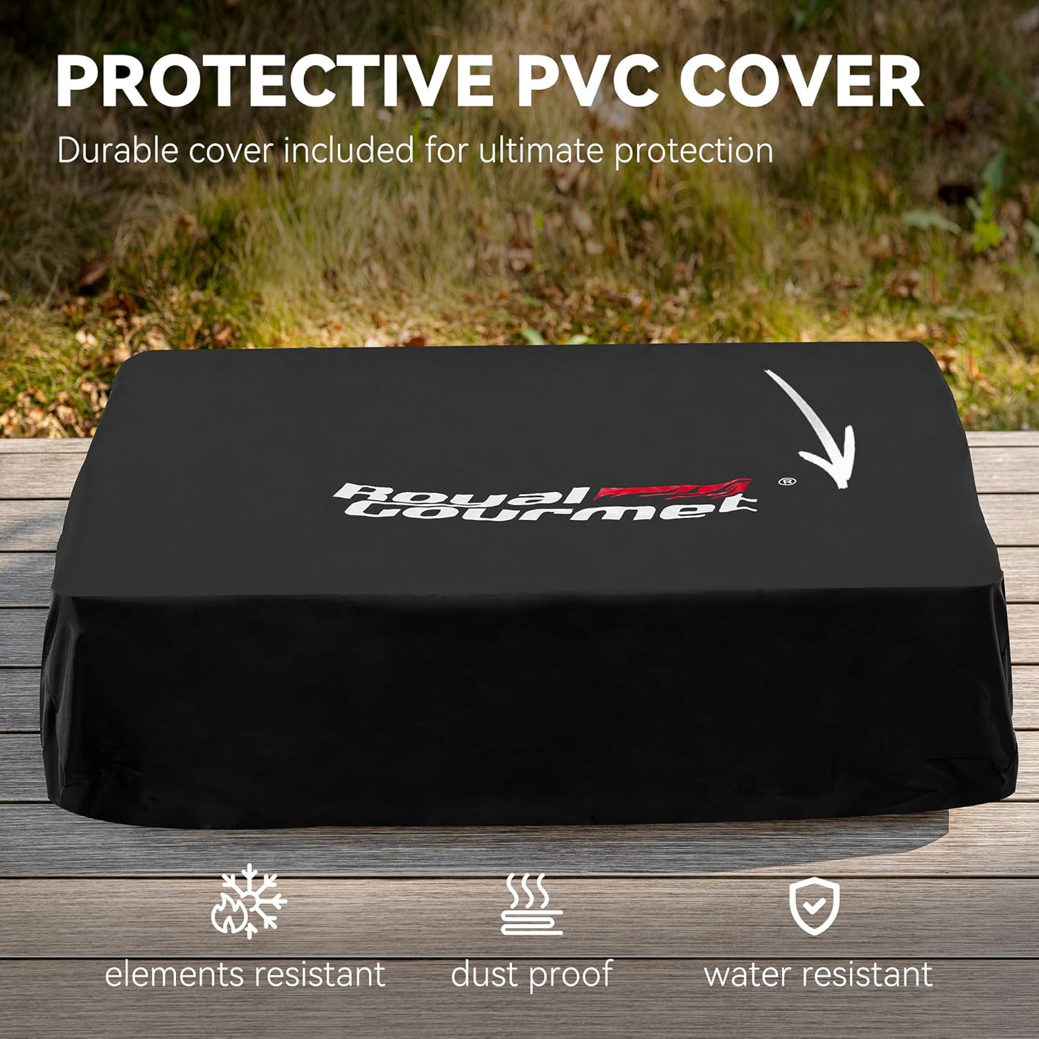 - Protective PVC Cover: The durable PVC griddle cover, which protects your portable griddle from any elements and bad weather, is included in the package upon delivery