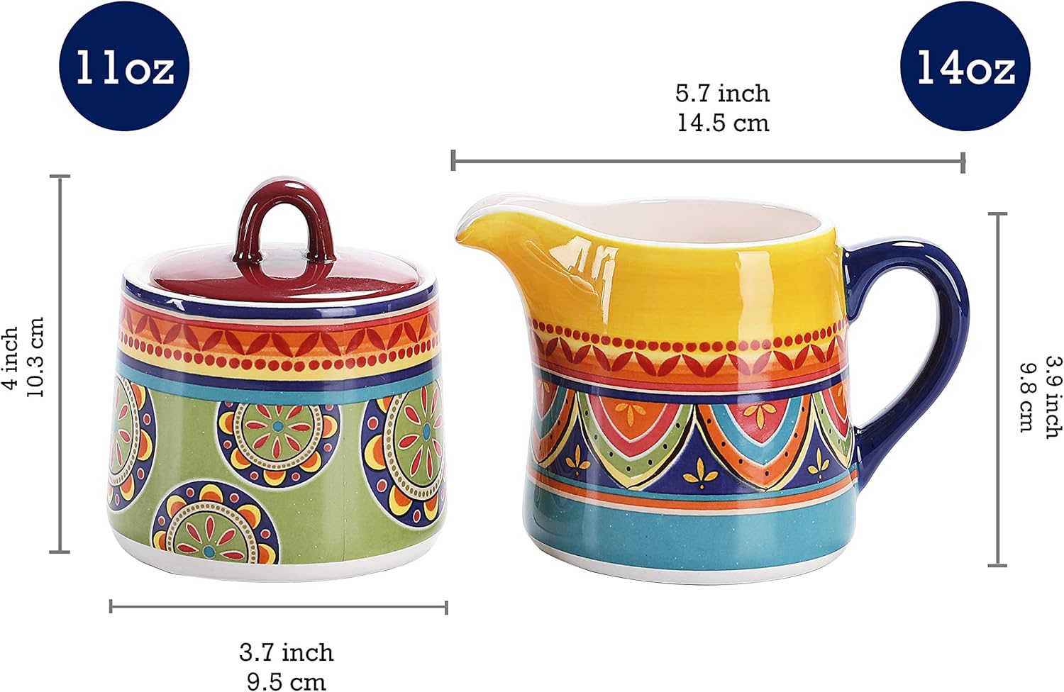 Bico Tunisian Ceramic Sugar and Creamer Set, Sugar Bowl with Lid, Cute Container for Coffee Bar, Kitchen Countertop Accessories, Microwave and Dishwasher Safe