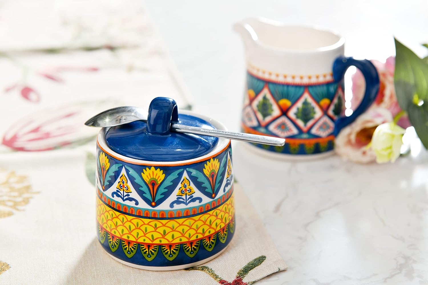 Bico Havana Ceramic Sugar and Creamer Set, Sugar Bowl with Lid, Cute Container for Coffee Bar, Kitchen Countertop Accessories, Microwave and Dishwasher Safe