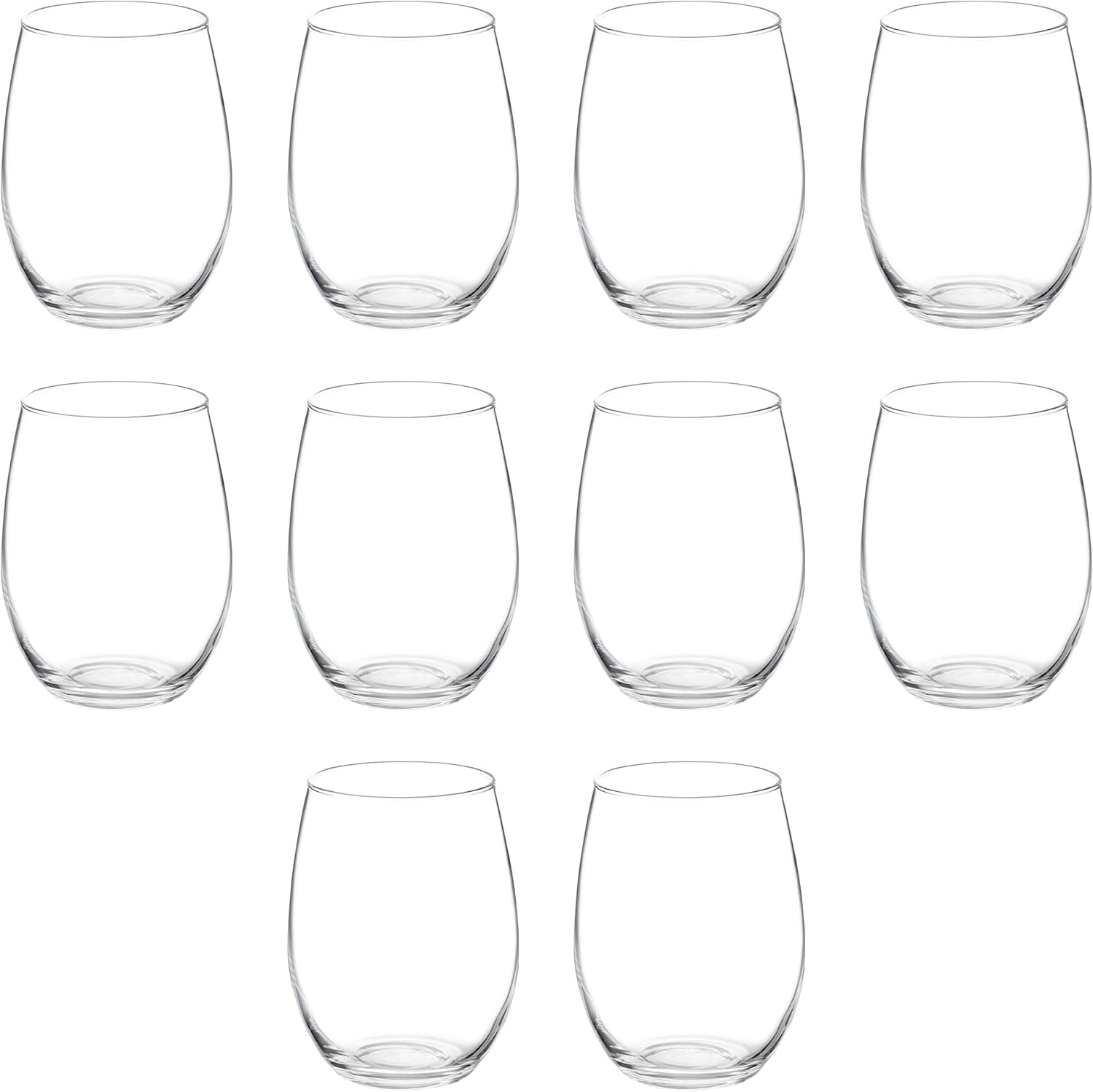 DISCOUNT PROMOS 10 ARC Stemless Wine Glasses Set, 21 oz. - Chardonnay, Cabernet, Merlot, Sauvignon - Clear