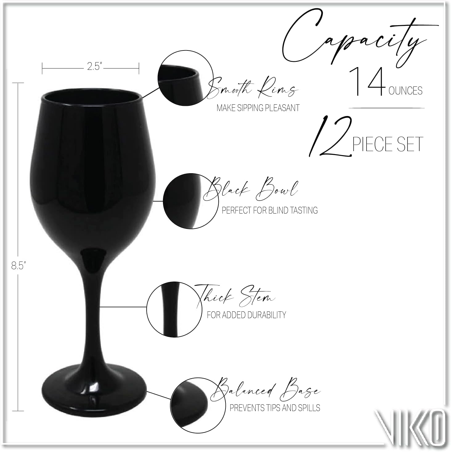 Vikko Décor Wine Glasses,14 Oz Fancy Wine Glasses With Stem For Red And White Wine, Thick And Durable Wine Glass, Dishwasher Safe, Great For Wine Tasting, Set Of 12