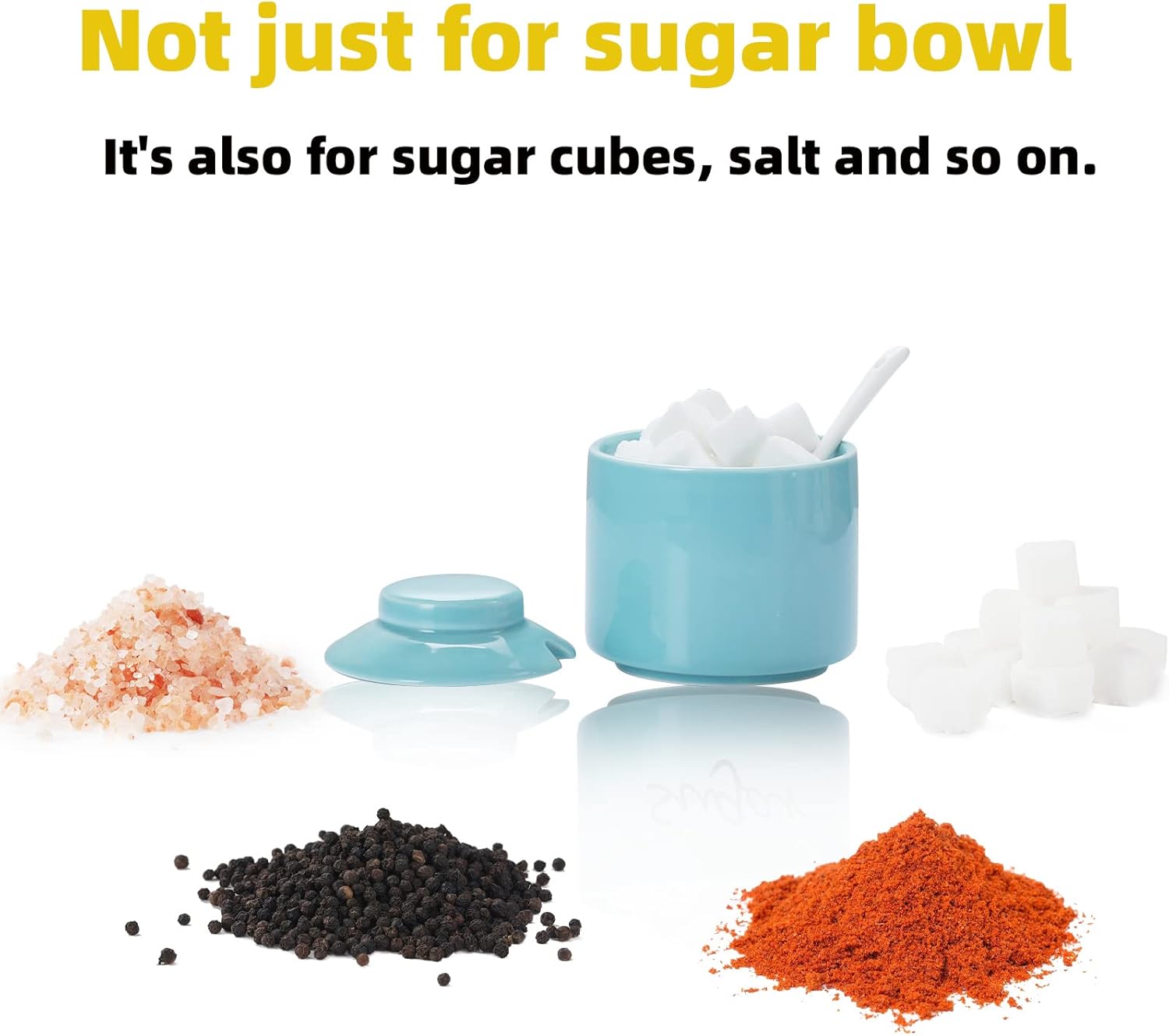 - HUMANIZED DESIGN : The size is 8oz,3.5"Lx3.5"Wx3.2"H,suitable for daily use.This sugar bowl with a small cutout on the lid can accommodate small spoons which is more convenient to use