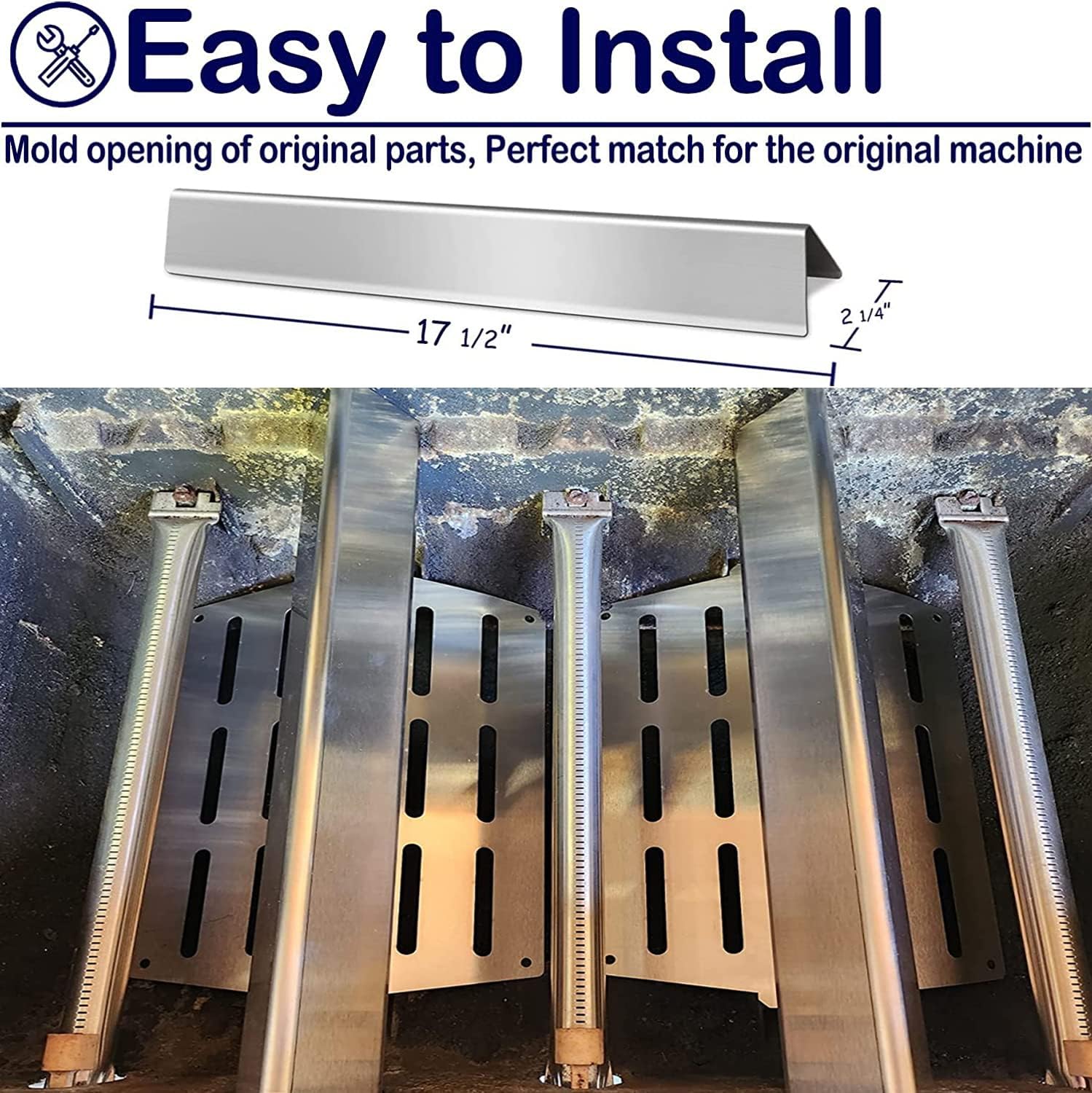 - 17.5 x W 2.25 x H 2.375 inch, Set of 5 flavor bars, NON-MAGNETIC stainless steel , with strong corrosion resistance & heat resistance, no need to replace your grill heat plate again and again