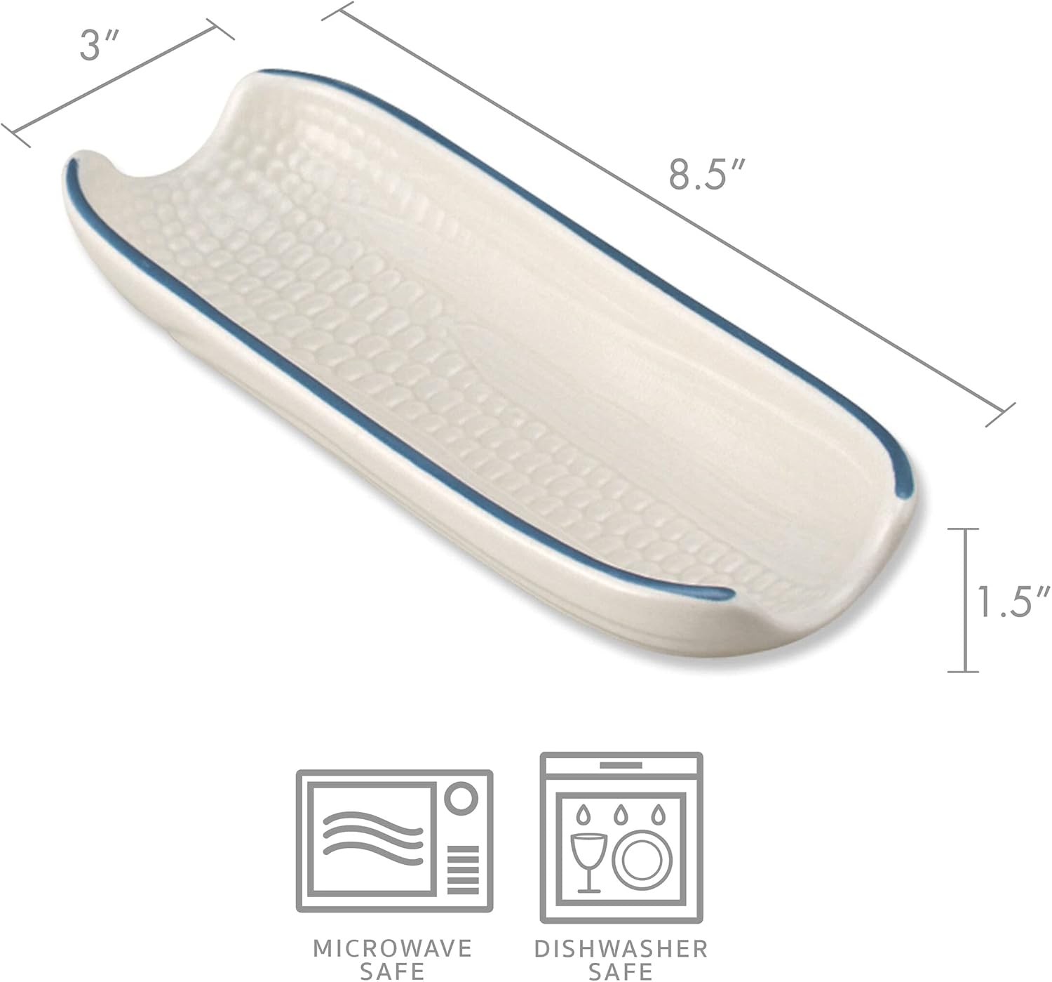 - SMART DESIGN: curved to cradle the cob and keep butter in the base, with dips on the sides to accommodate corn holders