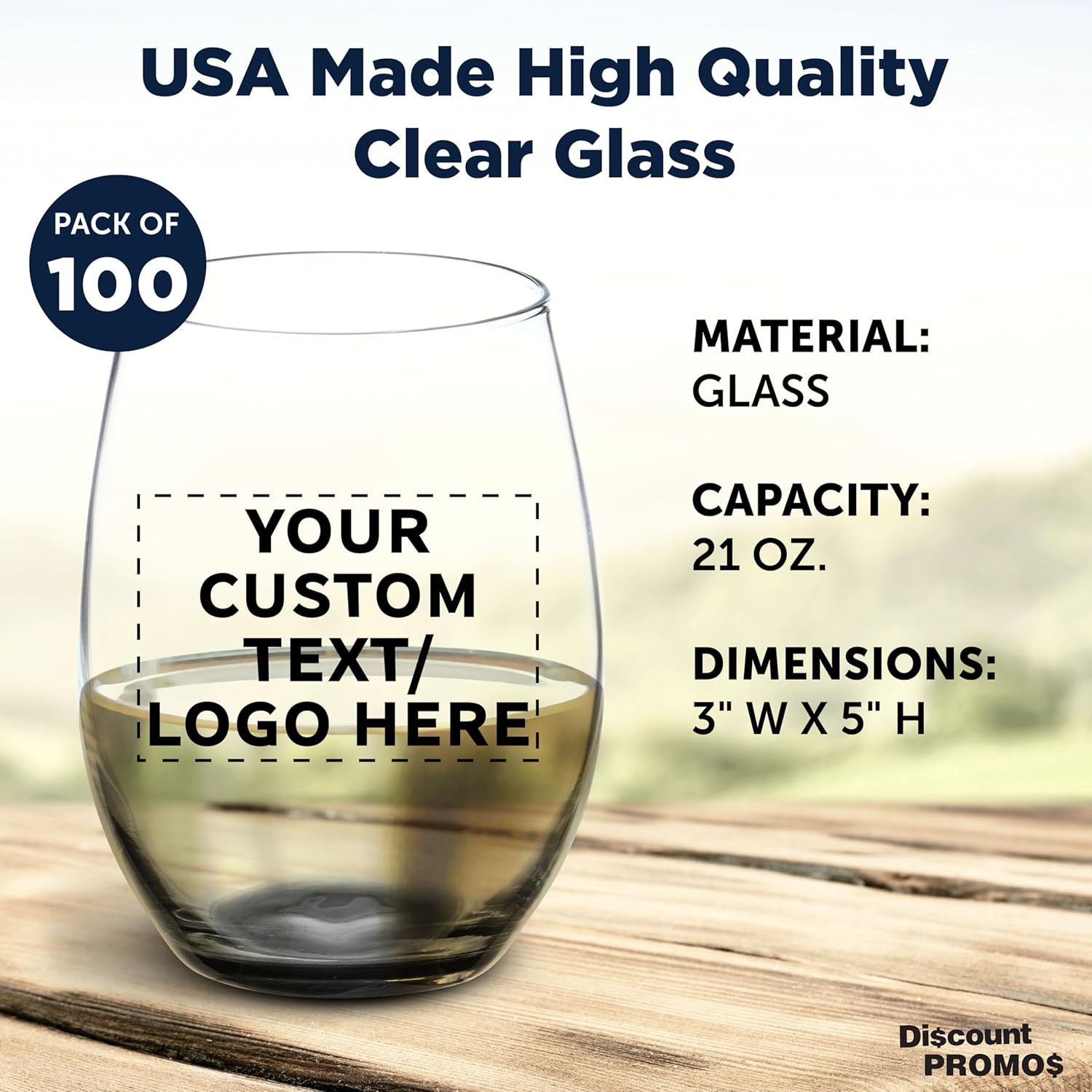 DISCOUNT PROMOS 100 ARC Stemless Wine Glasses Set, 21 oz. - Customizable Text, Logo - Chardonnay, Cabernet, Merlot, Sauvignon - Black