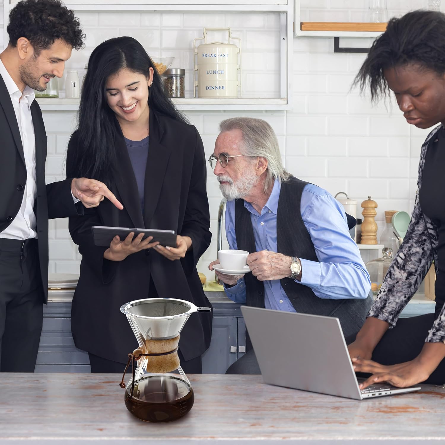 AGOGO Pour Over Coffee Maker Glass - 6/8/10 Cup Barista Kit with 304 Stainless Filter for Home, Office, Camping, Cafes - Easy Clean Coffee Dripper Set (Rag&Brush Included) (10 Cup/34oz)