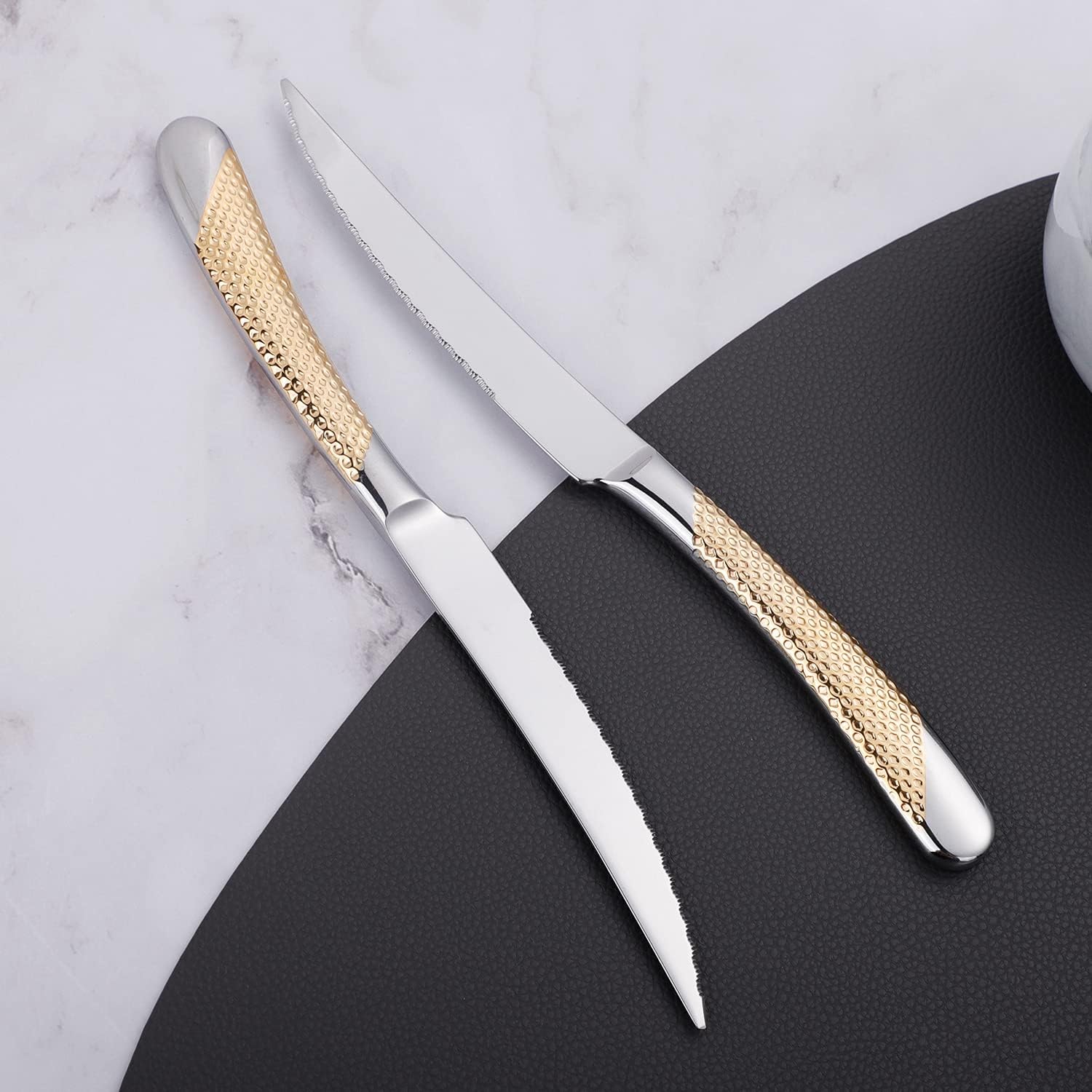 - 2.ćSUPERIOR DESIGNć:Mirror polished, smooth edges without hair spots, moderate length, moderate weight, concave handles, comfortable to hold. Elevate daily meals to exquisite dining experiences