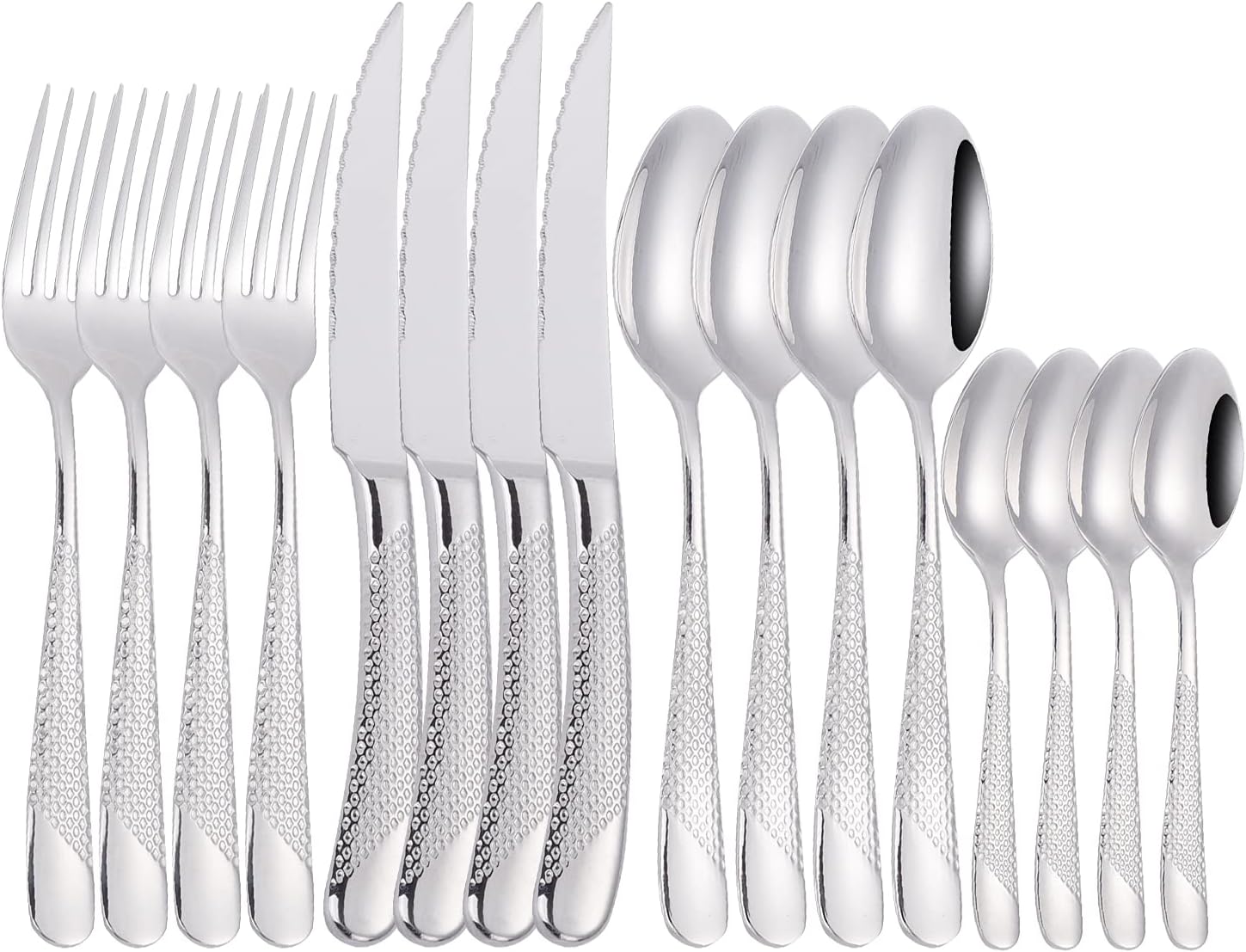 - 4.ćService for 4ć:This silverware set includes 4 dinner fork, 4 dinner spoons, 4 dinner knives, 4 tea spoons, It can satisfy most family of 4 people