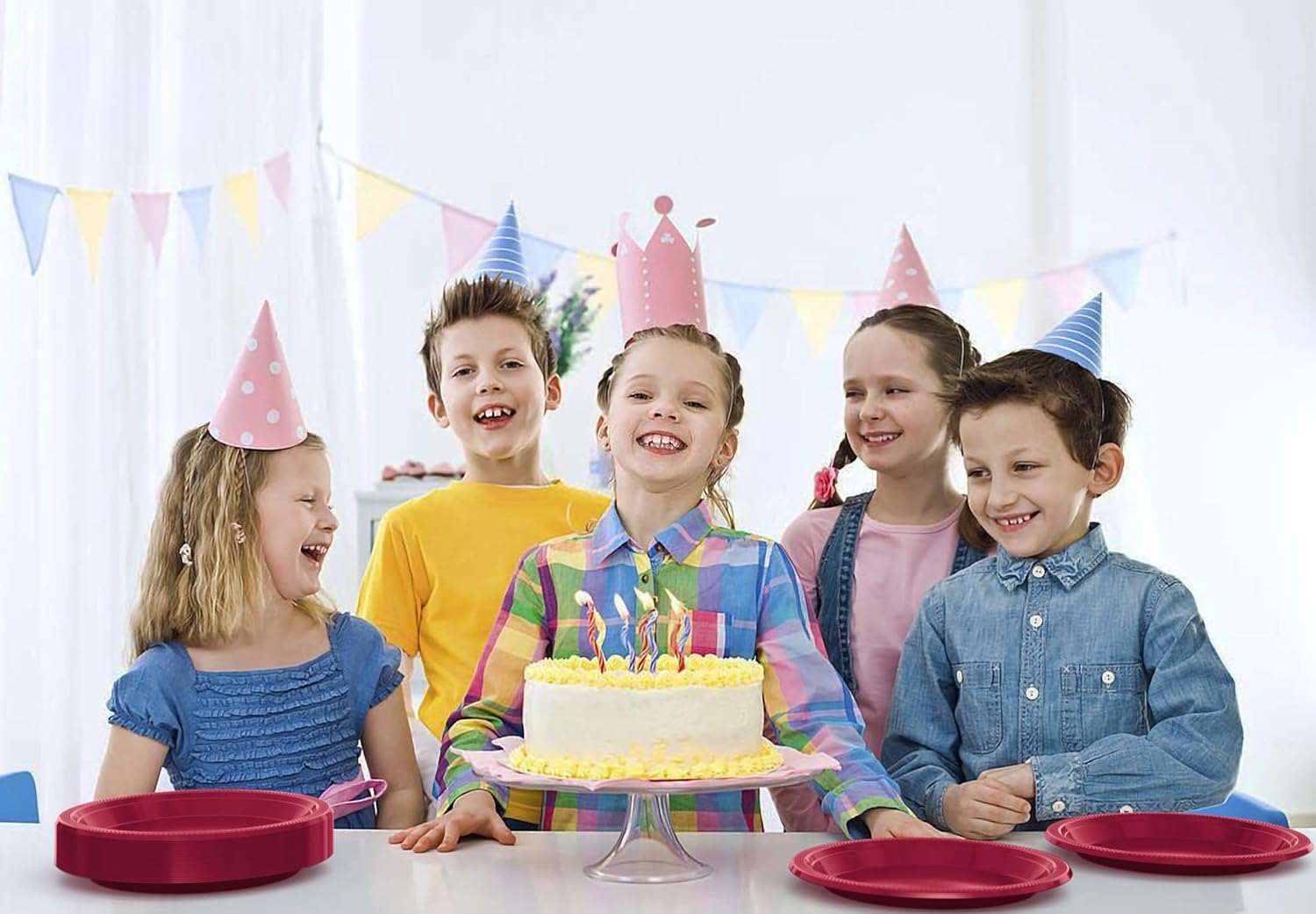 - Health & Safety: Our Burgundy plastic plate set is made with food safe materials, ensuring the health and safety of your guests. Whether it's for a birthday party or a picnic, you can trust that these disposable plastic plates meet the highest standards of hygiene, providing peace of mind for you and your loved ones.