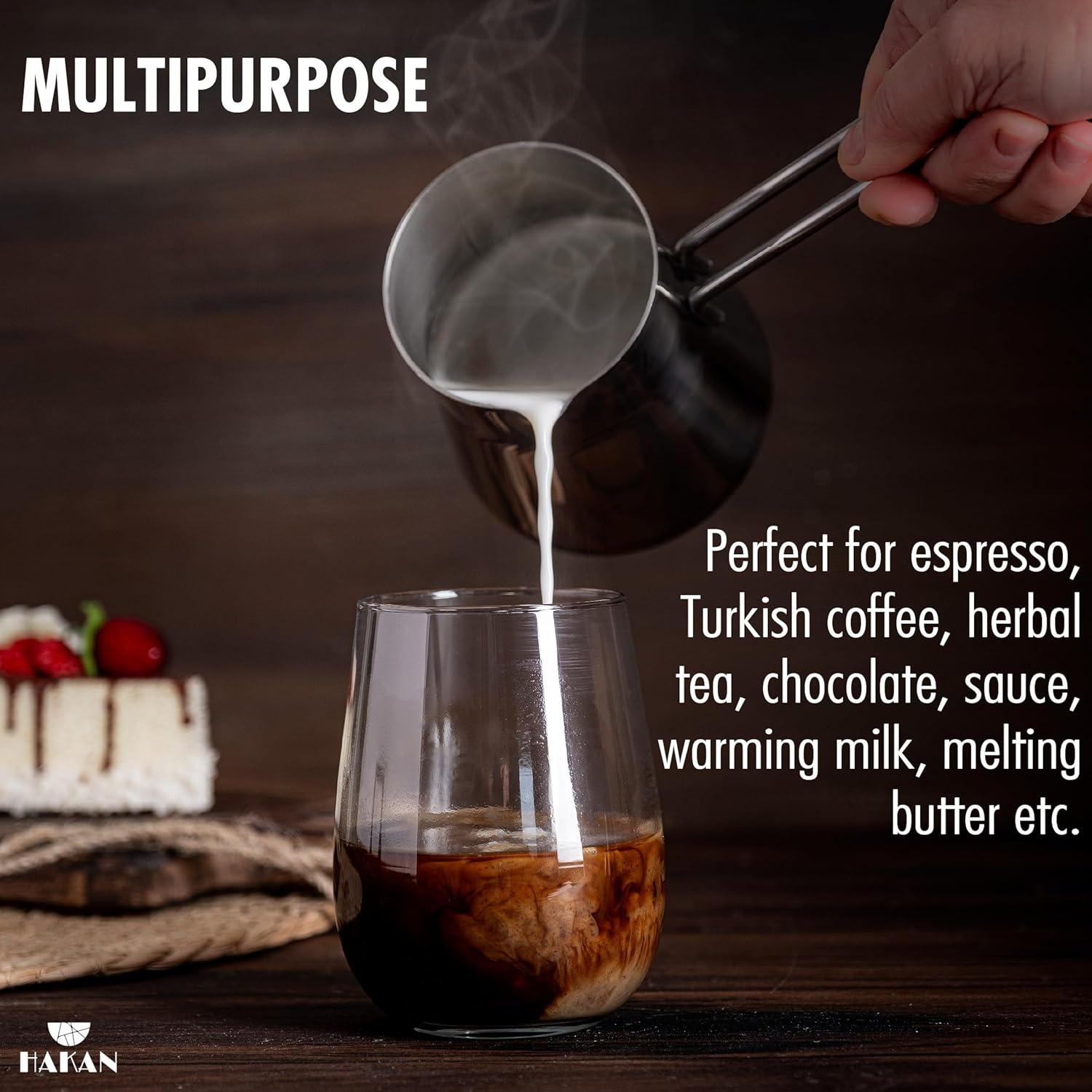 - 🥤 Authentic Coffee Experience: Hakan Coffee Pot is designed for making rich Turkish, Arabic, and Greek coffee with traditional brewing methods. It is perfect for espresso and herbal tea. It can also be used for heating milk, melting butter, or preparing sauces.