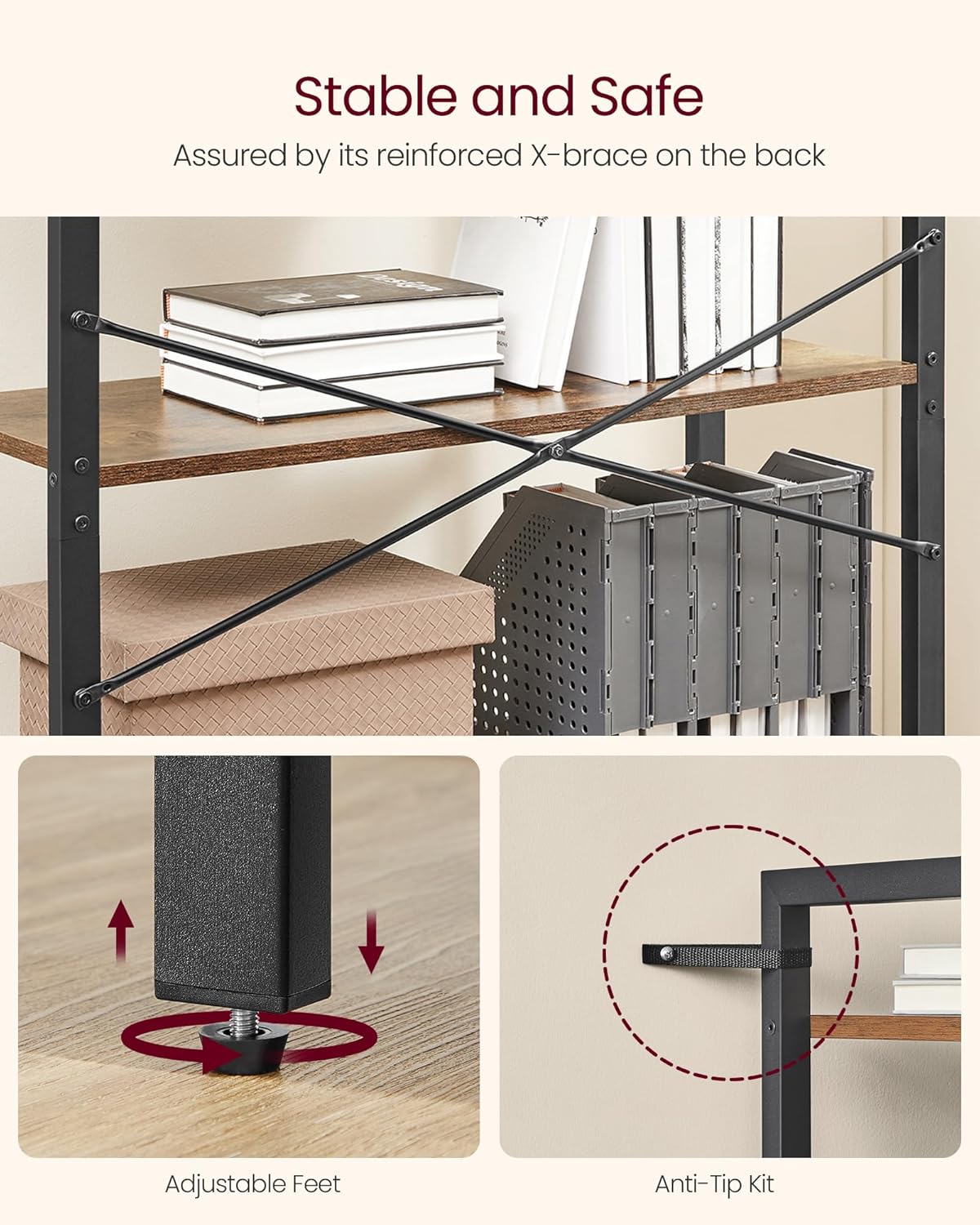 - Stable and Safe: X-brace reinforces the structure, adjustable feet keep this tall book shelf balanced on slightly uneven floors, and the included anti-tip kit will help you fix it to the wall for greater stability and safety