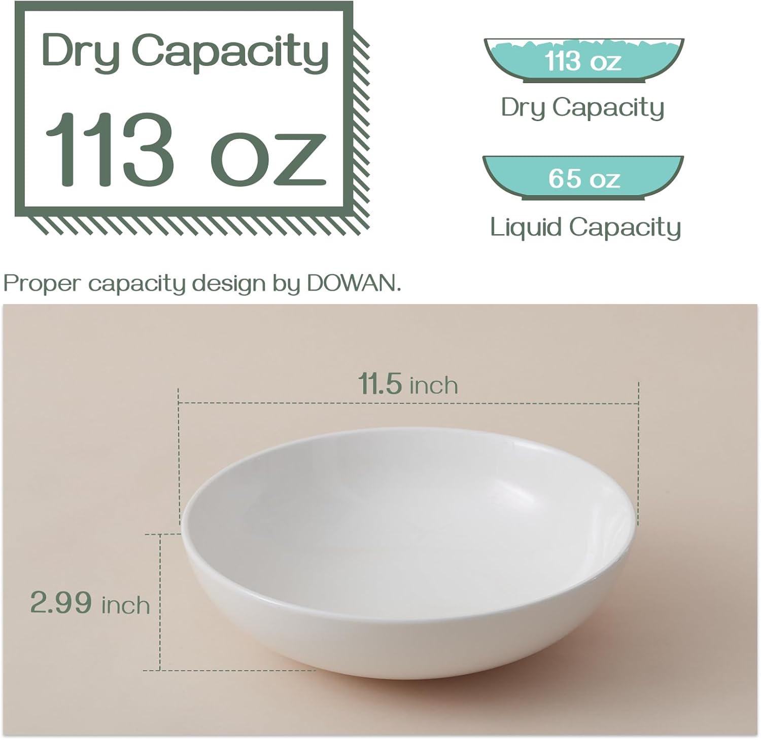 DOWAN 11.5" Large Serving Bowls, 3.2 Qt White Serving Platter, Big Ceramic Centerpiece Bowls, Microwave & Dishwasher Safe, Set of 2
