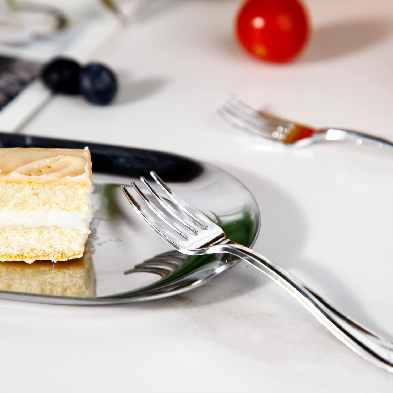 - PERFECT FOR SMALL MOUTHS: Our mini forks disposable are the ideal solution for your mouth. So safe and health for your family. Small and delicate disposable silver plastic forks that will make your child reluctant to put down their cutlery.