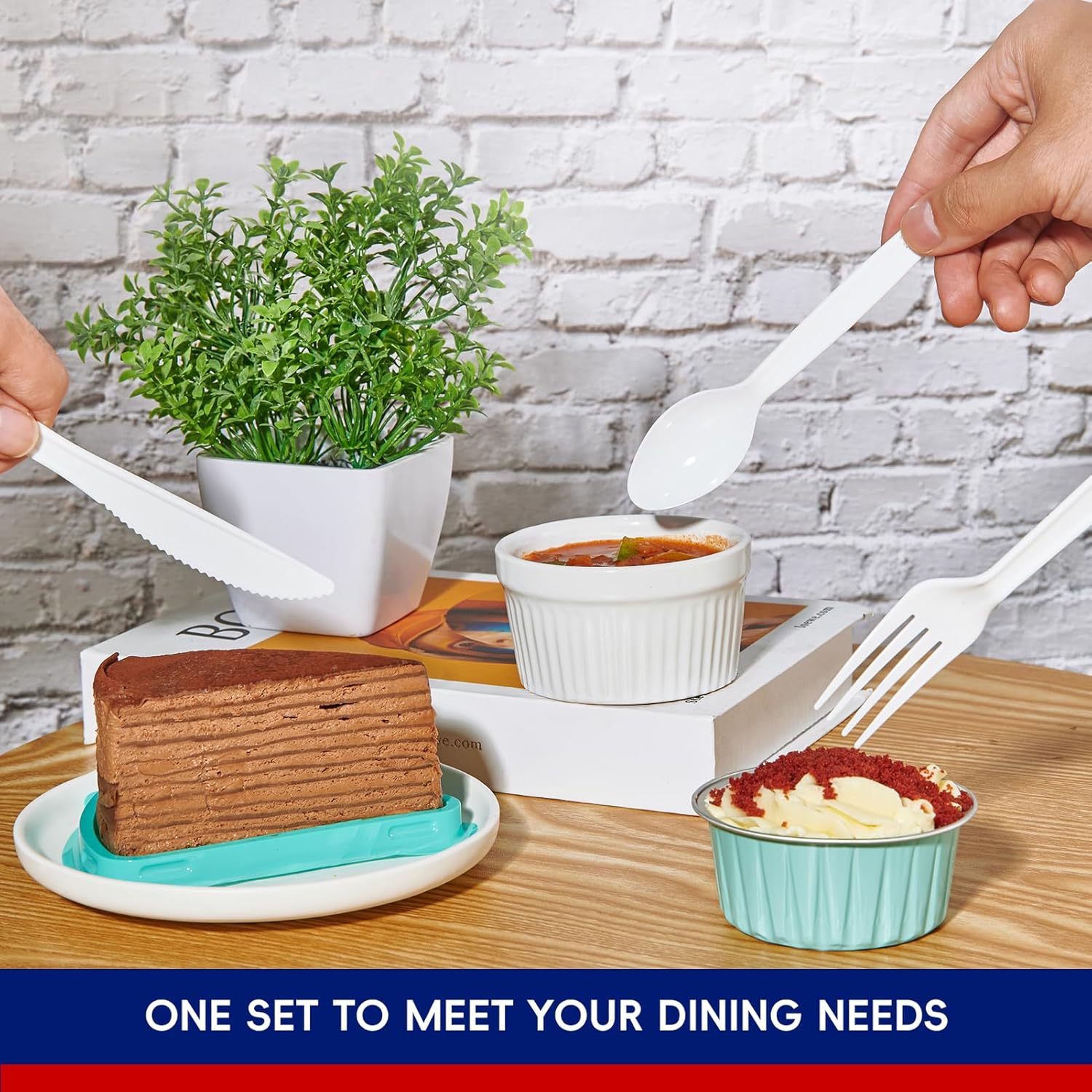 - 【Premium Material】Our white disposable cutlery set is made from plastic, making it an easy and hygienic way to dispense cutlery for any event! Perfect for restaurants, food trucks, cafeterias, and food delivery services such as uber eats, GrubHub, Doordash, etc.