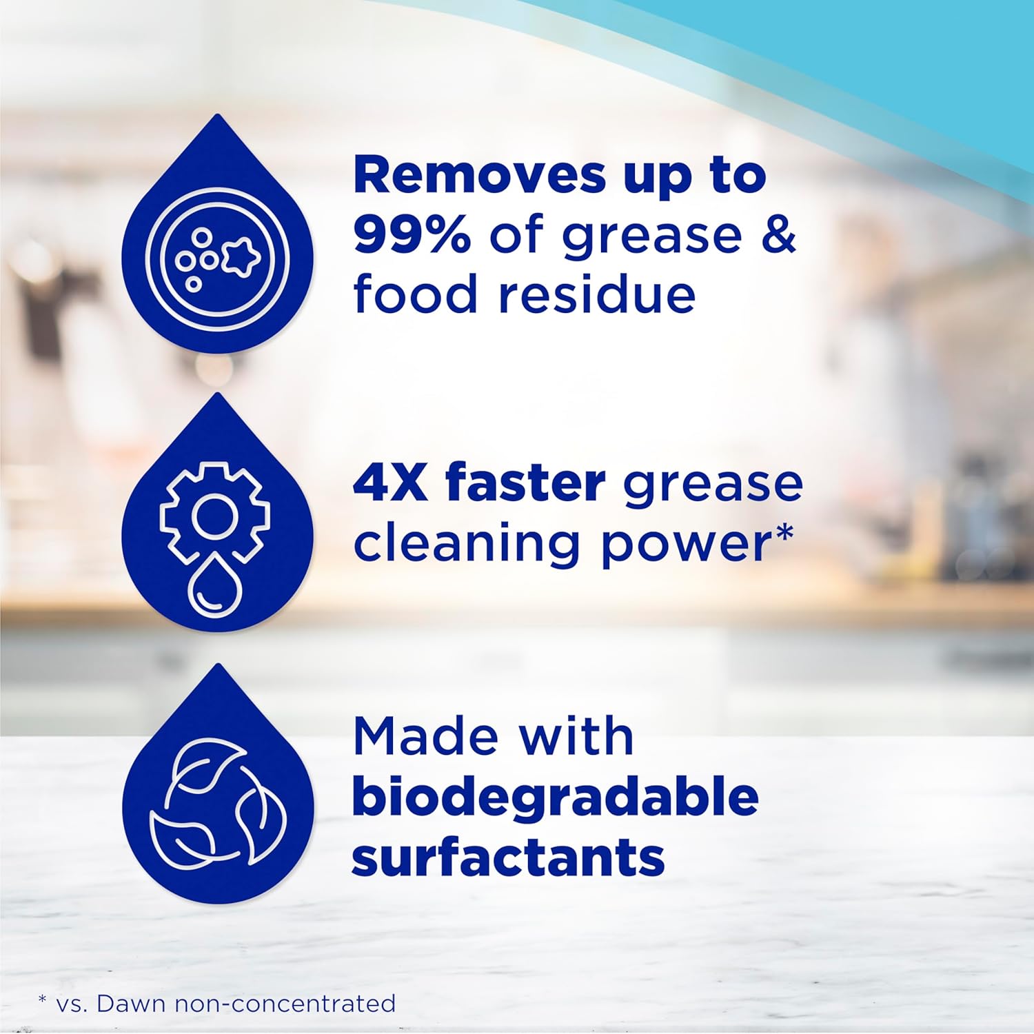 - 2. GREASE AND RESIDUE FIGHTING: Dawn platinum's improved dish detergent liquid formula easily fights 99% of grease and food residues *vs. Dawn Non-Concentrated