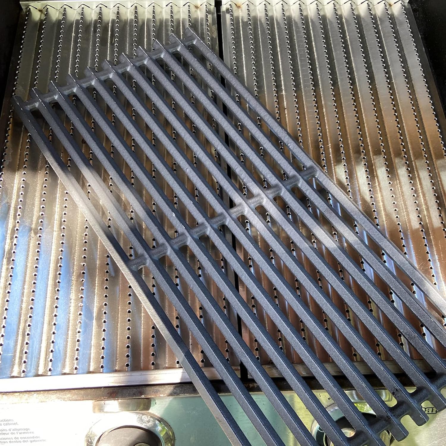 - ✅Package Contents: 2-Pack Stamped Stainless Steel Emitters, 2-Pack Matte Cast Iron Cooking Grates, 2-Pack Stainless Steel Heat Tent, 2-Pack Burner, 1-Pack Crossover Tubes.
