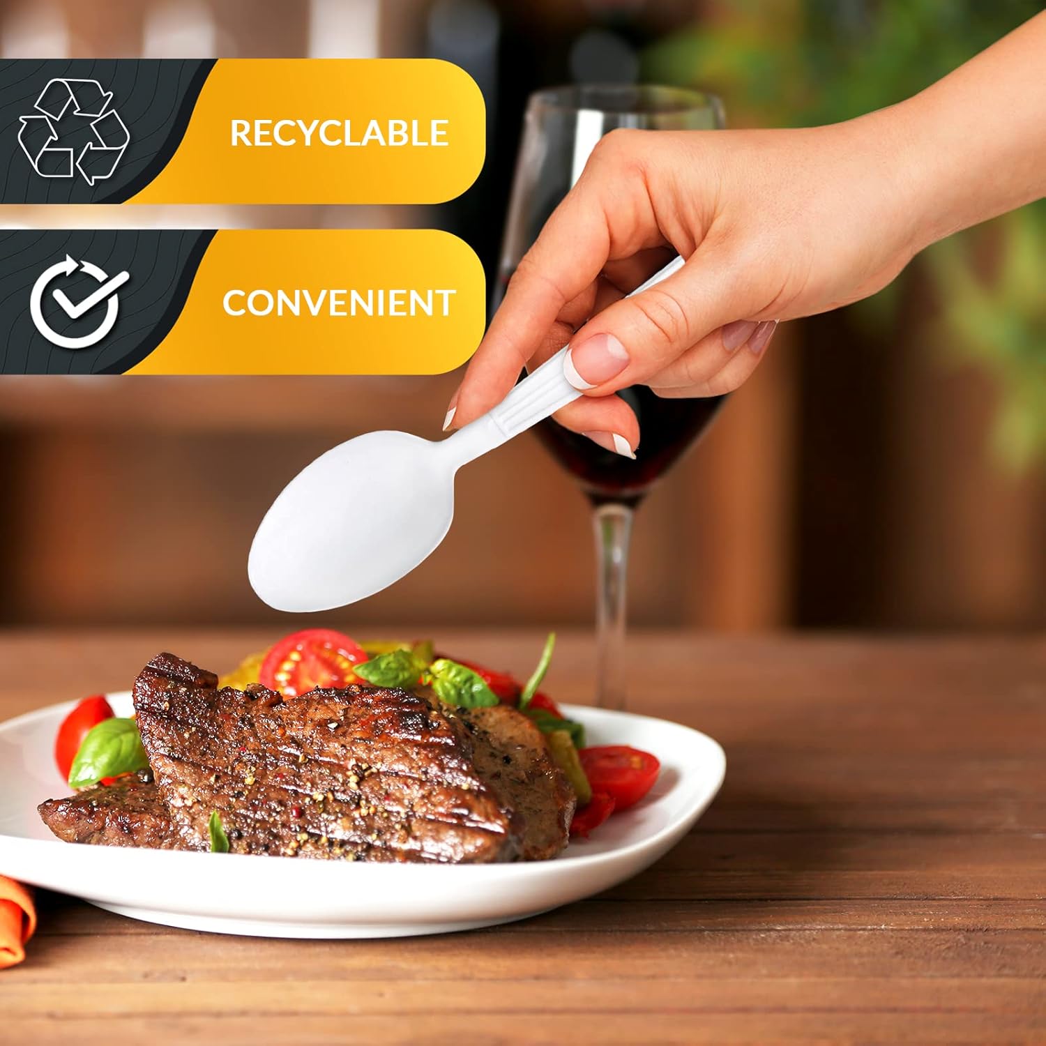 - EASY CLEANUP: Relish the simplicity of post-event cleanup with our plastic spoons heavy duty. Despite their premium look, these spoons are designed for single use, making cleanup a breeze. Just dispose of them after use and enjoy the rest of your event without the worry of washing up. This feature is especially useful when you have plastic spoons bulk at large events where cleaning up can be overwhelming.