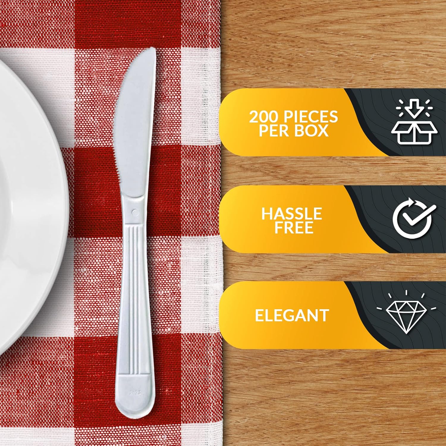 PAMI Heavy Weight Disposable Plastic Knives [200-Pack] - Bulk King Size Deluxe White Plastic Silverware For Parties, Weddings, Catering Food Stands, Takeaway- Heavy-Duty Single-Use Partyware Knives