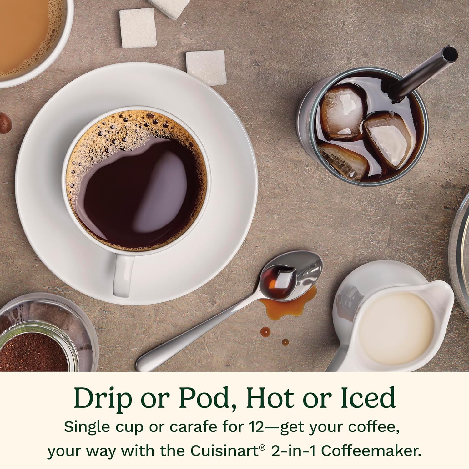 - SINGLE-SERVE: Enjoy five serving sizes – 4 ounces, 6 ounces, 8 ounces, 10 ounces or 12 ounces – compatible with any brand of single cup pod including Keurig K-Cup pods with an optional reusable filter cup so you can use your own coffee through our HomeBarista elite Cuisinart features - pour it over ice for a cool coffee treat.Filter type:Reusable