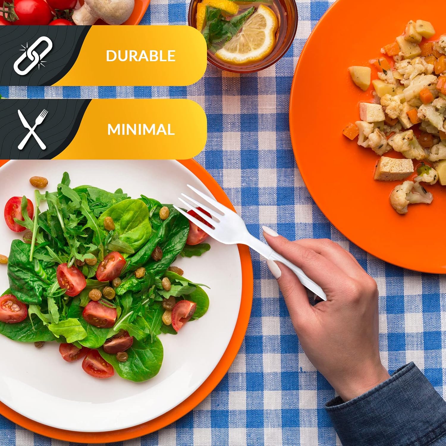 - · MINIMAL DESIGN & DISPOSABLE FOR HASSLE-FREE CLEANING: Featuring a well-made, elegant design and a timeless white color, our plastic silverware forks will blend seamlessly with your tableware to match the décor of any party or fancy dinner table. Plus, our 100% recyclable, disposable cutlery sets make the after-party clean up a breeze!