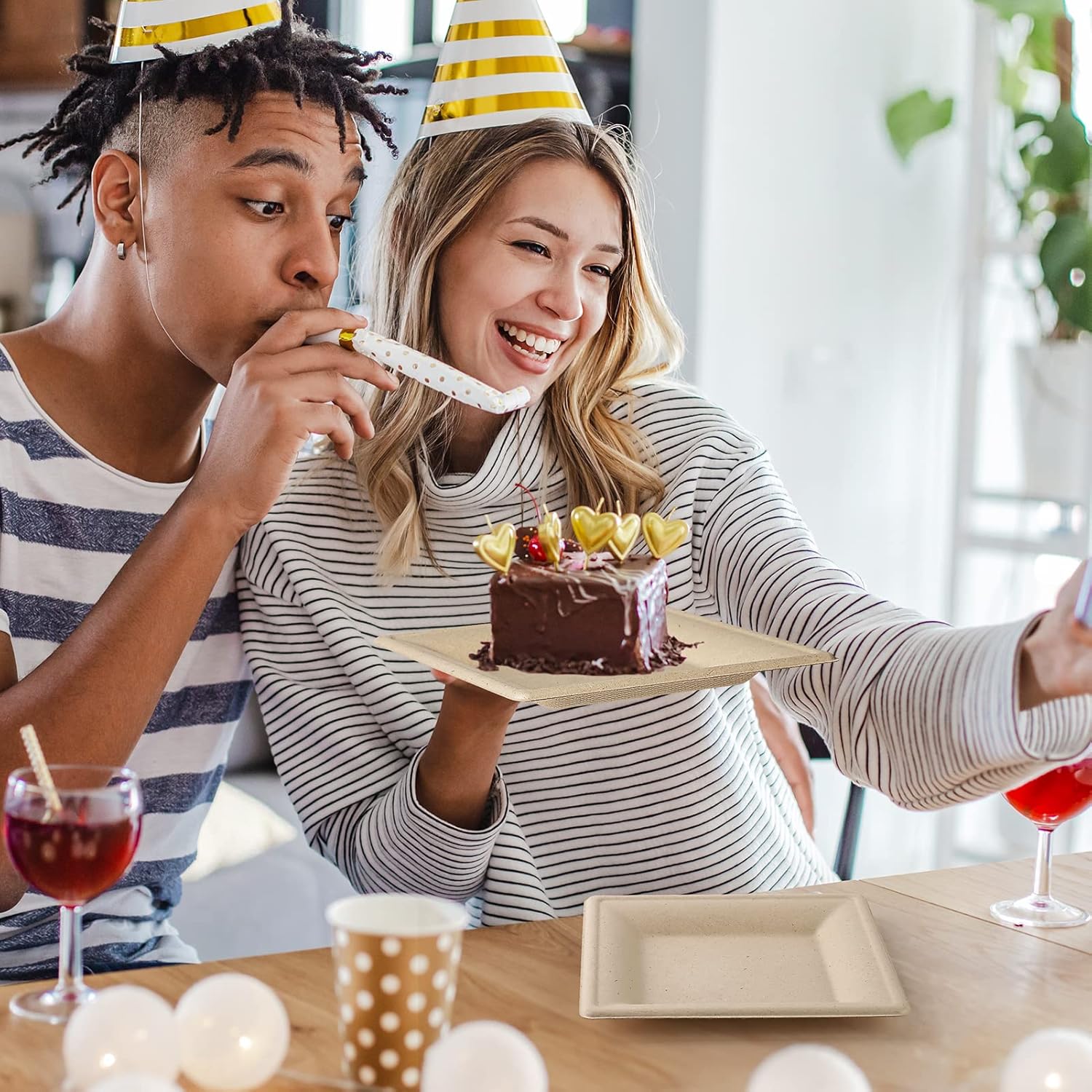 - Daily Event: Whether it's for daily meals, camping trips, picnics, birthdays, or weddings, these disposable square dinner plates are the perfect choice for those who want to reduce their impact on the environment without sacrificing quality or convenience