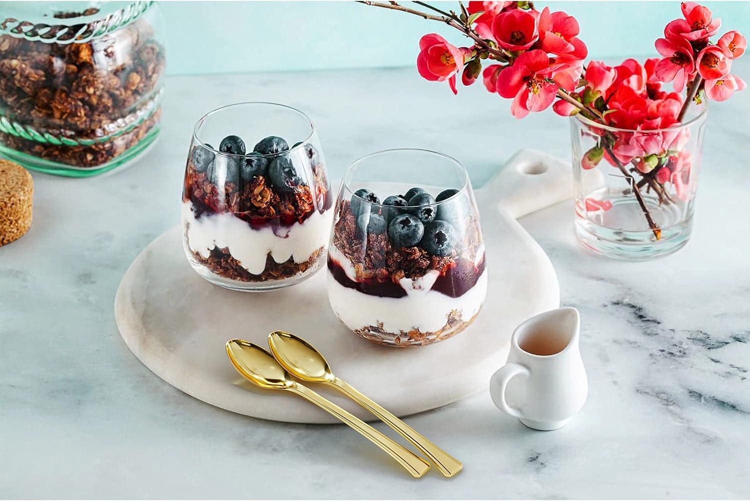 - Multi-Use Spoons - Gold mini plastic spoons are small plastic spoons that are versatile for a variety of uses, such as serving desserts, appetizers, or even stirring cocktails. They provide an elegant look that can be used for formal events or everyday use.