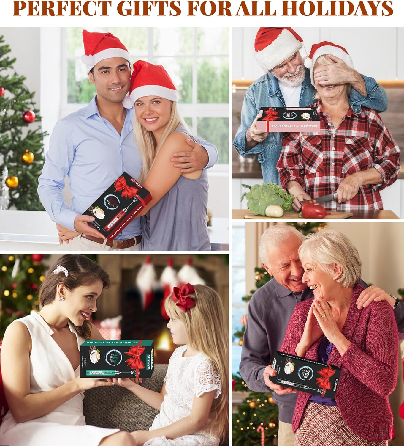 YUSWKO Milk Frother Handheld for Coffee, Rechargeable Drink Mixer with 3 Heads 3 Speeds Electric Coffee Frother Whisk, Gift for Many Occasions and Festival