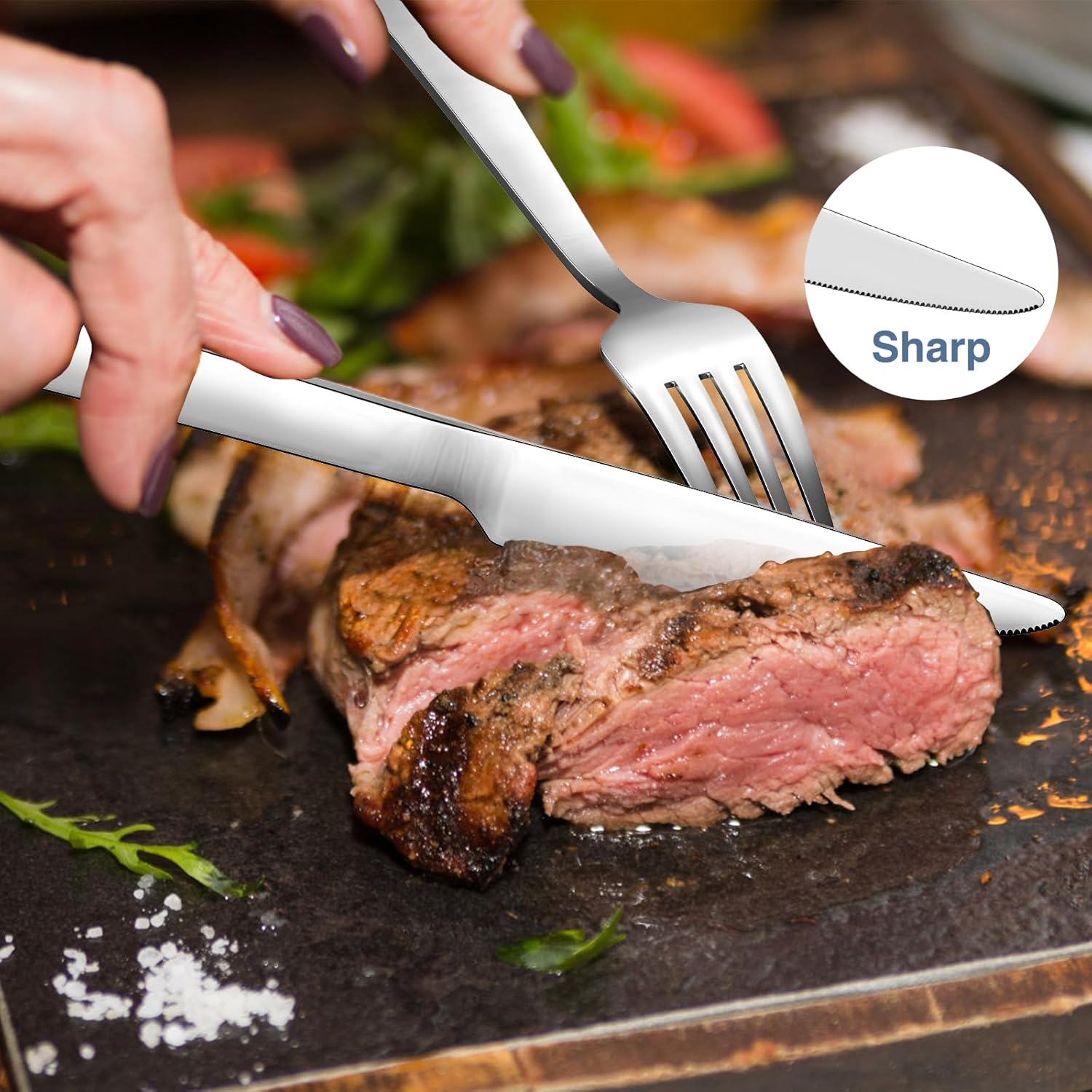 - Comfortable Grip and Balanced Weight: Each utensil in our tableware set is designed with ergonomic handles,providing a comfortable grip and a balanced weight distribution.The well-crafted design ensures ease of use and enhances the overall dining experience for you and your guests.Furthermore,the smooth edges and polished surfaces ensure a pleasant dining experience and reduce the risk of accidental cuts or scratches.