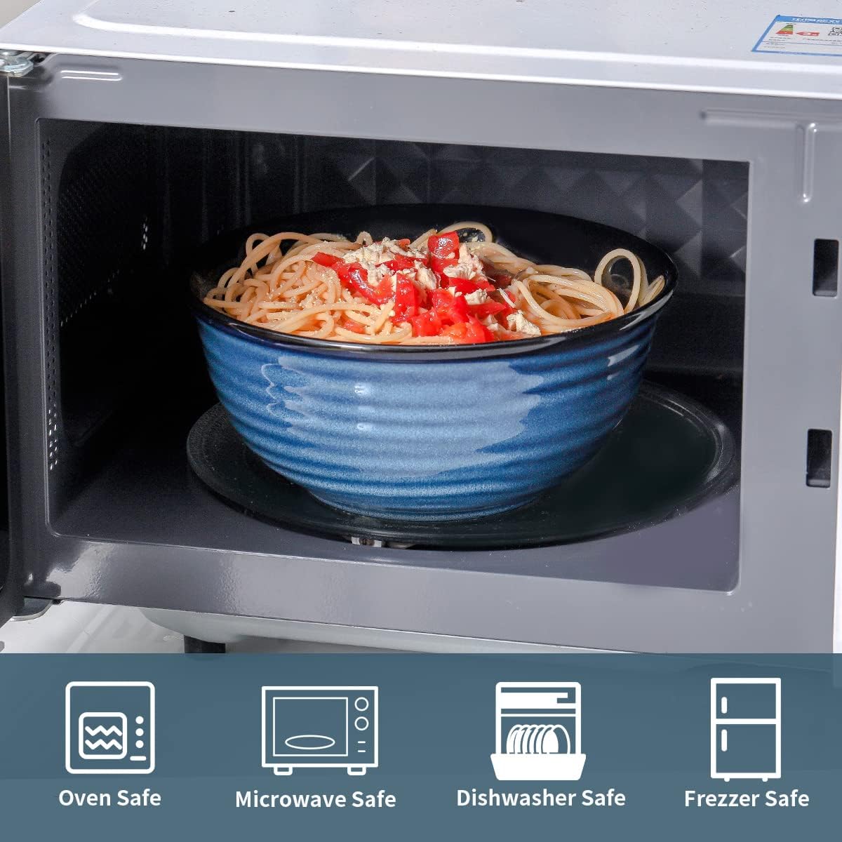 - Chic and Practical Design: The navy blue exterior adds elegance to your table and enhances your dining presentation. The striped design on the exterior not only adds flair but also enhances the grip and practicality of the handheld pasta bowls