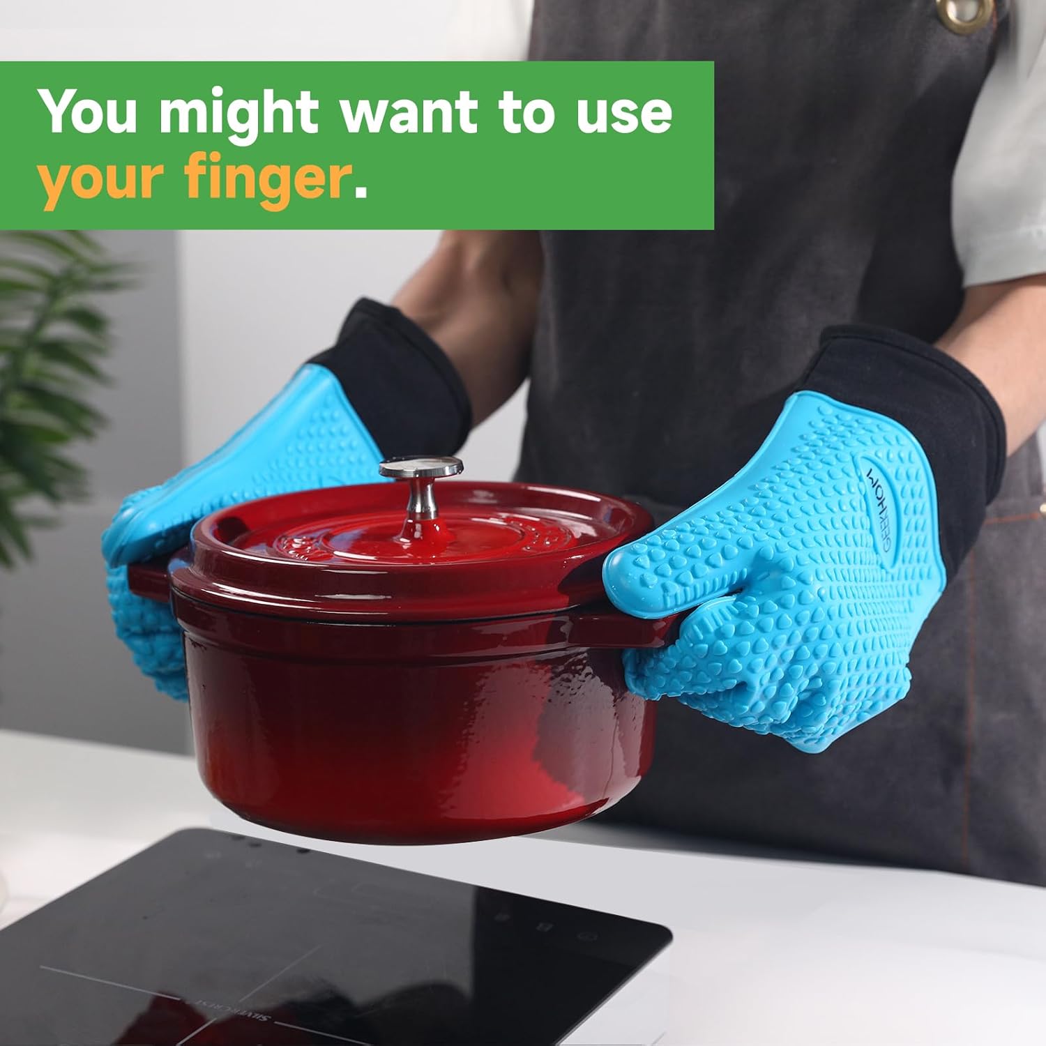 GEEKHOM BBQ Gloves, Grilling Gloves Heat Resistant Oven Gloves, Kitchen Silicone Oven Mitts, Long Waterproof Non-Slip Pot Holder for Barbecue, Cooking, Baking, Aqua Blue