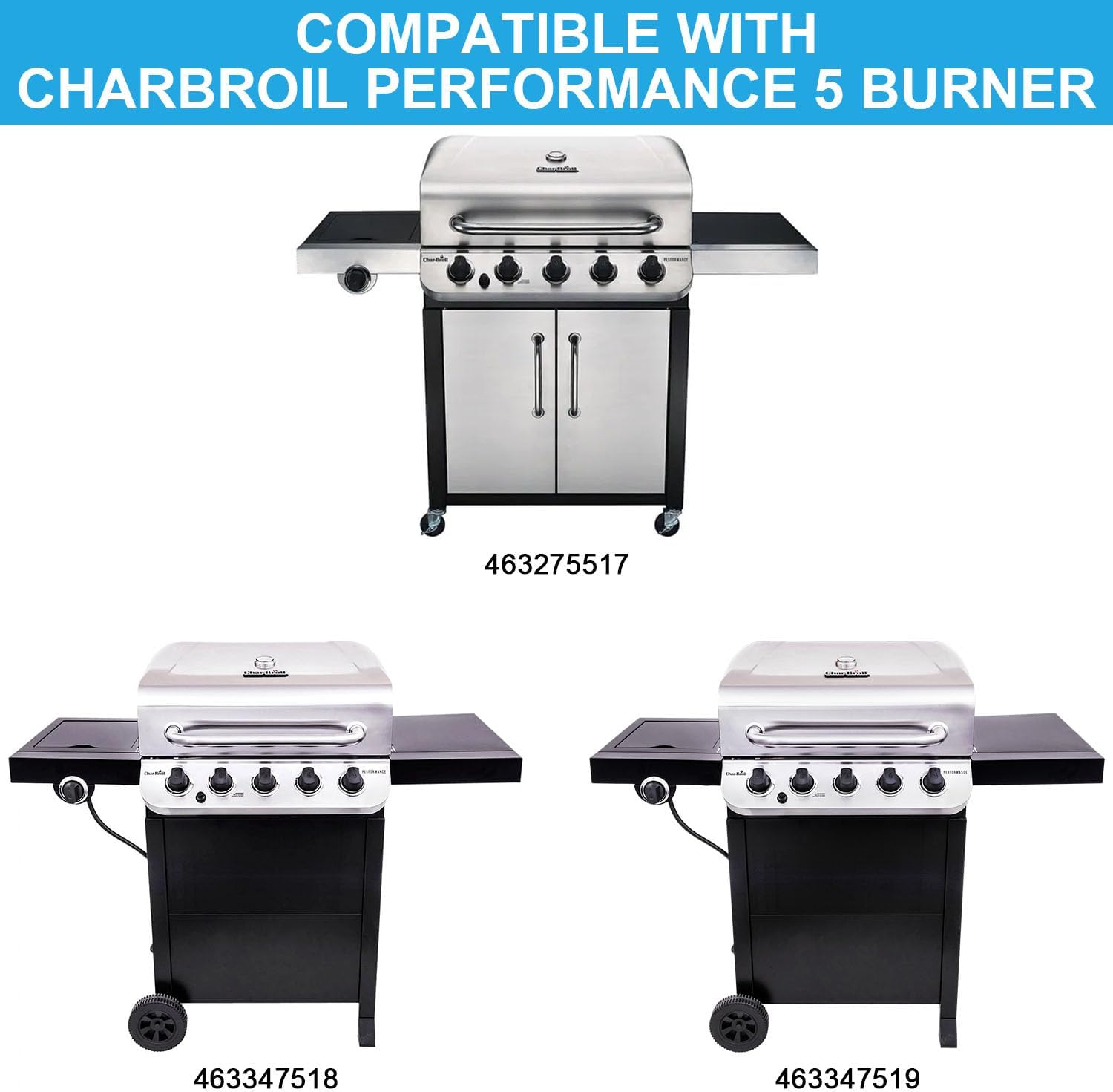 - Perfect for Charbroil Performance 5 Burner Grills: Inserts Griddle and Grill Grates for Charbroil Performance 5 Burner 463275517, 463275717, 463243518, 463243519. Compatible with Charbroil Performance Grills 463243518 463275517, 463243519 463275717.ăPerfect for Charbroil Signature 3 Burners GrillsăCompatible with Char-broil Signature 3 Burners Grills: 463348017, 463372017.ăNoteăWhen using our product with a matching upper for charbroil 3 burner grill, there is an extra piece of grate net that can be used as a spare grill net.