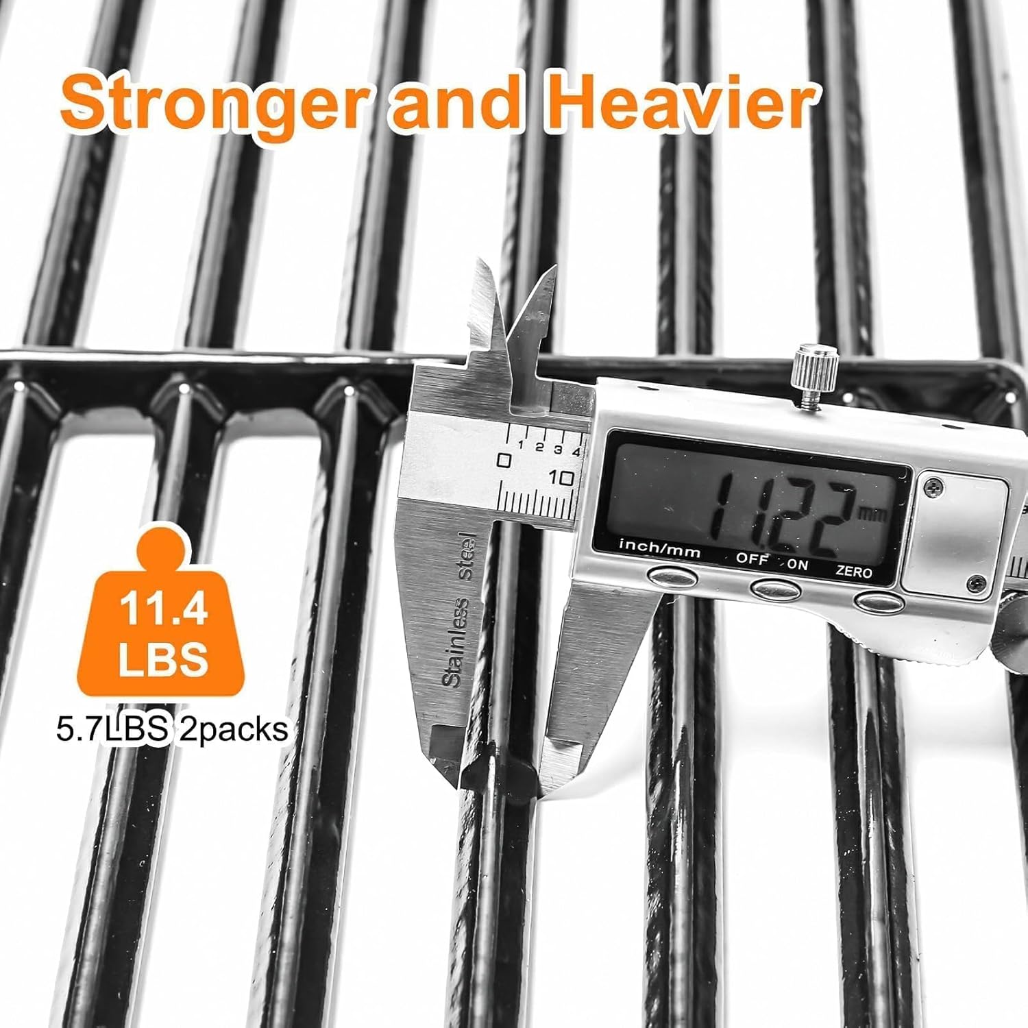 - 【Newly Upgrade】- Our cooking grates have been upgraded to POLISHED PORCELAIN COATED, is heavier, more durable, less brittle, non-toxic, with good corrosion resistance and heat retention, better quality than matte porcelain