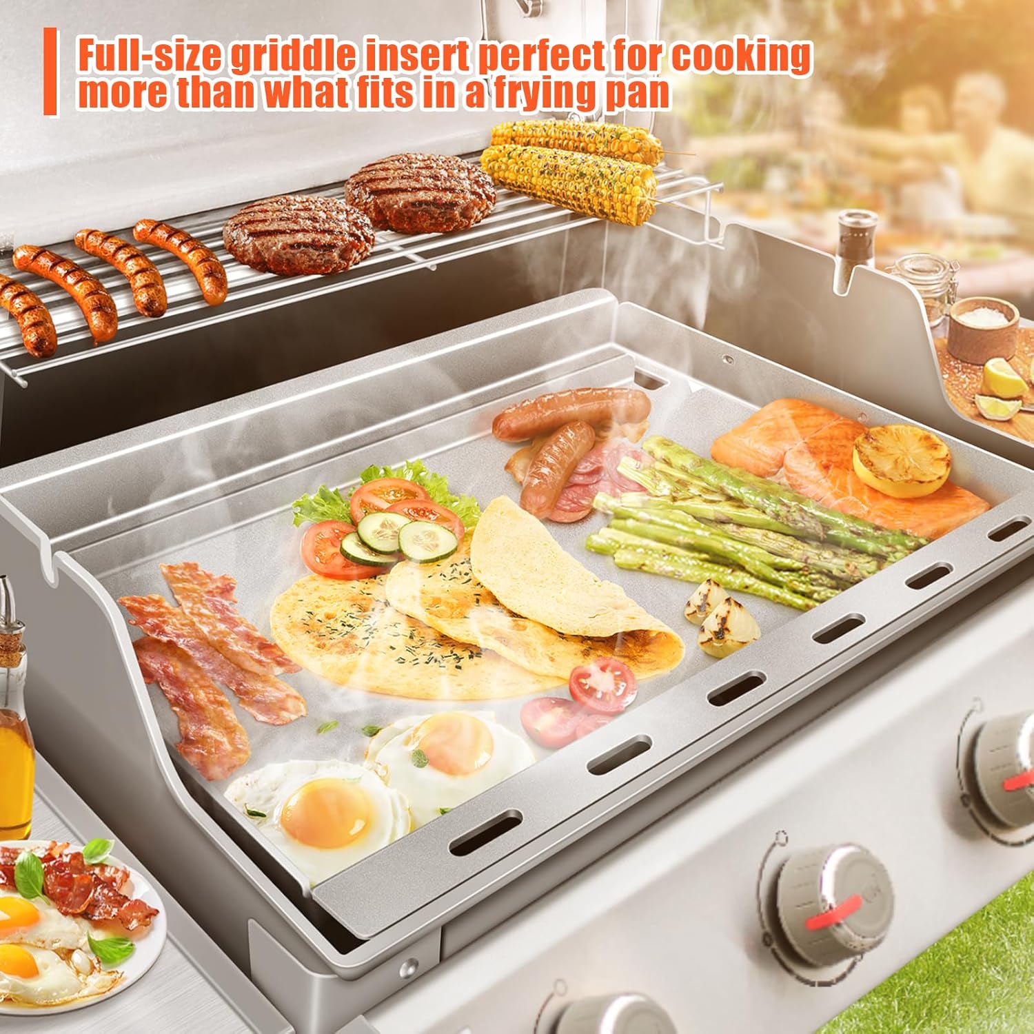 - đ„ăSeamlessly Switch From Grilling to Griddlingă â Simple to install and replace, transforming your gas grill into a professional griddle full insert in just minutes. đ„ăVersatile and Easy to Useă â Ideal for cooking breakfast, lunch, and dinner, from eggs and pancakes to quesadillas, grilled cheese, steak, and potatoes