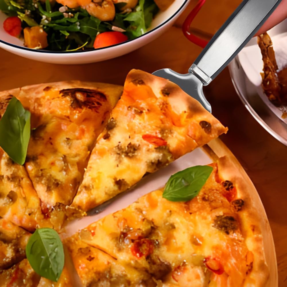 - Pizza Pie Server:Pizza Spatula with jagged edges can easily slice the Pizza pie smoothly and neatly,and transfer the pizza to your plate to treat your family