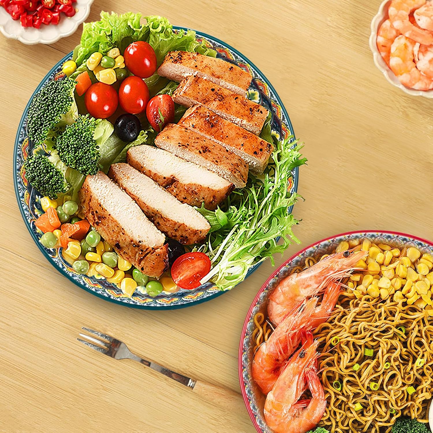 - Easy Maintenance and Cleaning: Fired at high temperatures to maximize the strength of the porcelain, The Ultra-durable glaze is sufficient to resist the scratches of the knives and forks at 1000 grams of pressure, won't absorb stains, ensuring that they look great and maintain their bright colors over time,The smooth glaze on the plates makes them easy to clean, either by hand or in a dishwasher.