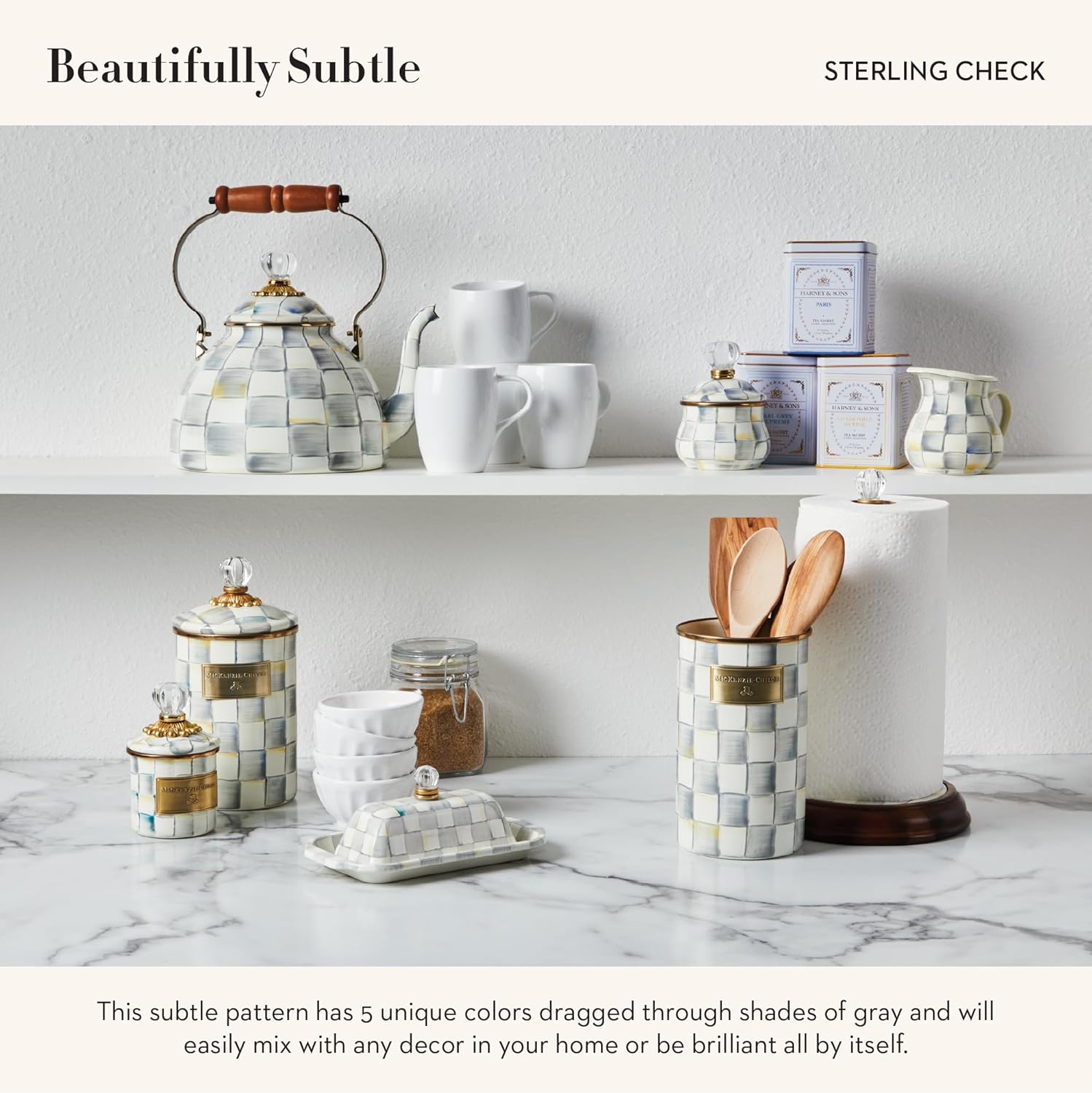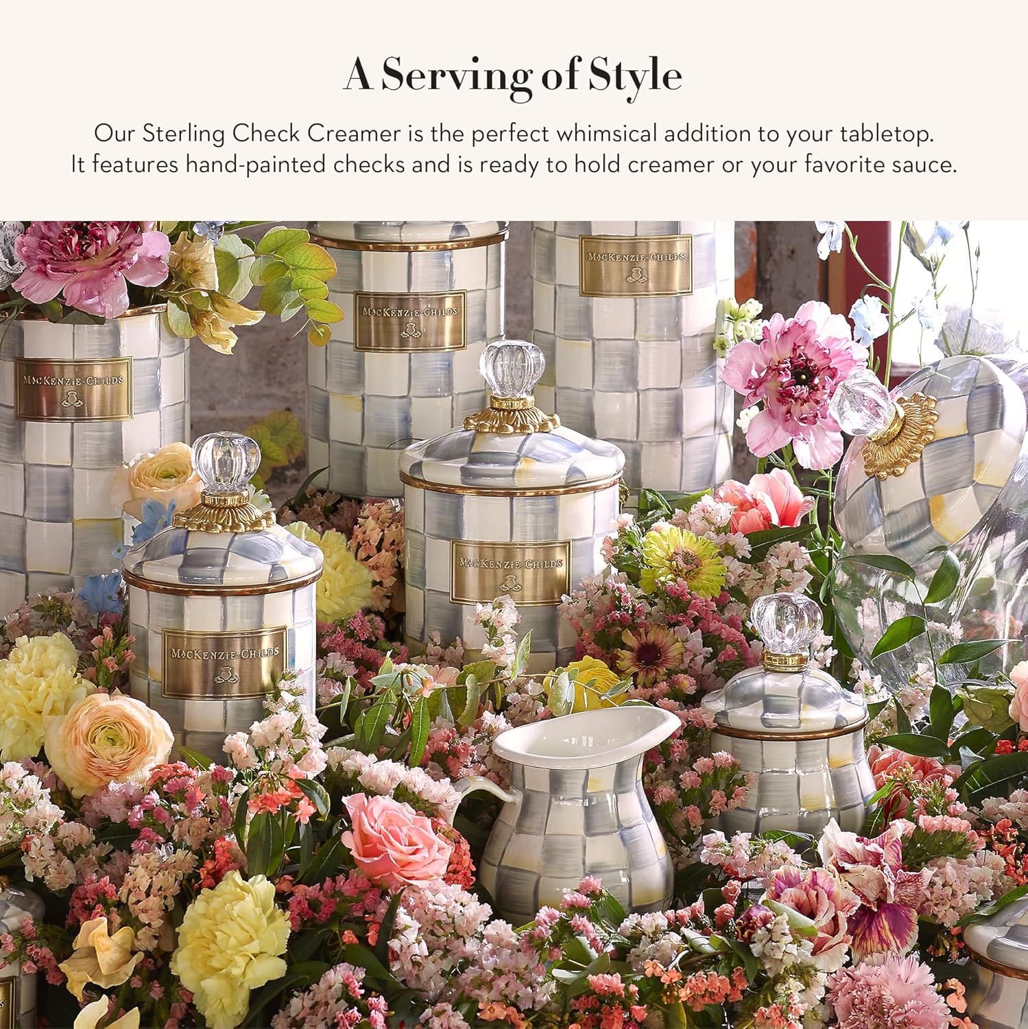 MACKENZIE-CHILDS Enamel Creamer, Creamer Dispenser with Pour Spout, Kitchen Enamelware, 14-Ounce Capacity, Gray-and-White Sterling Check