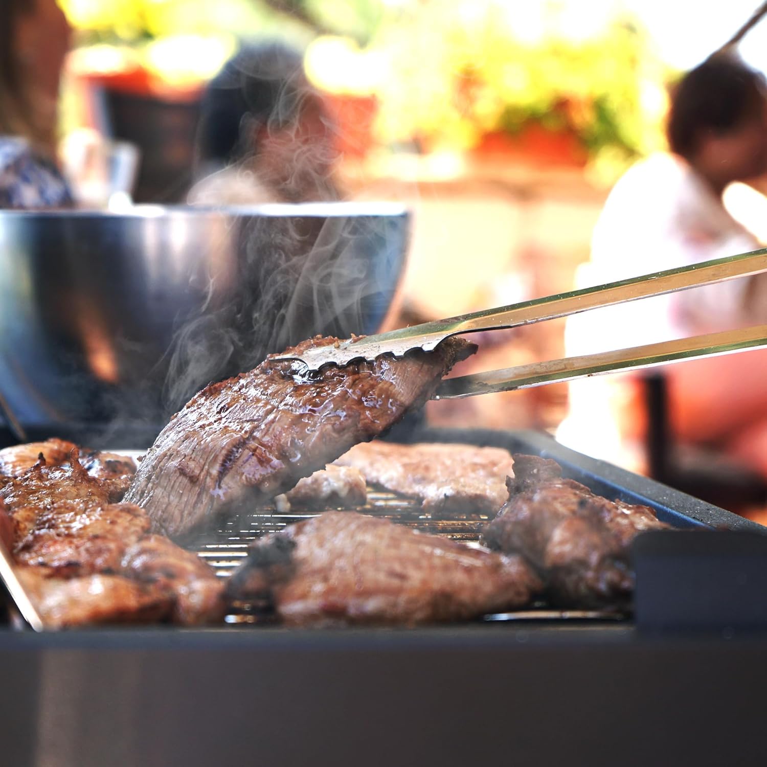 - EASY TO CLEAN: The stainless steel grill grate has a smooth surface. Unlike the cast iron grill, only a brush can easily maintain the grill net clean and tidy