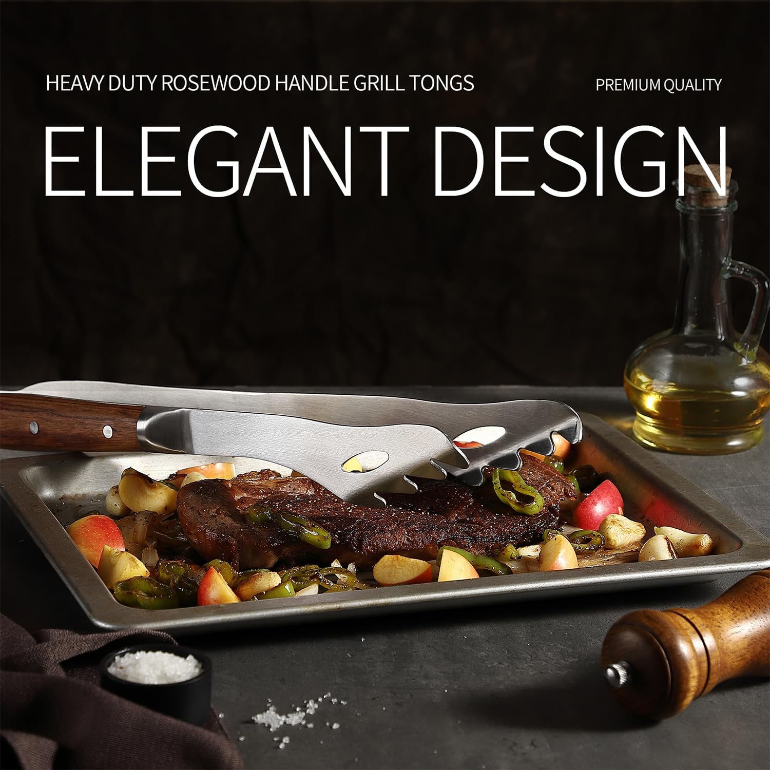 GRILLGEN Heavy Duty Rosewood Handle BBQ Grill Tongs, 16.73" Long Premium BBQ Grill Tongs for Outdoor Grilling, Essential Accessory for Barbecue & Grill, Best Grilling Gift