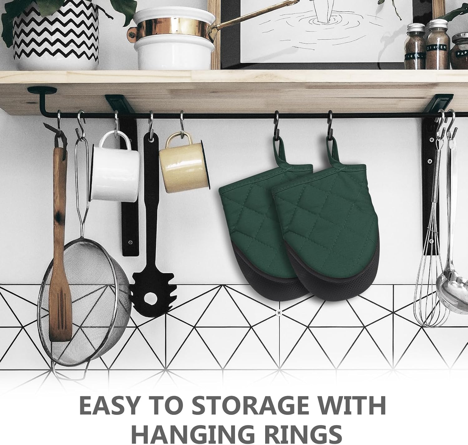 1 Pair Short Oven Mitts - Silicone Kitchen Oven Gloves High Heat Resistant 500℉, Mini Oven Mits with Non-Slip Grip Surfaces and Hanging Loop for BBQ, Baking, Cooking and Grilling (ArmyGreen)