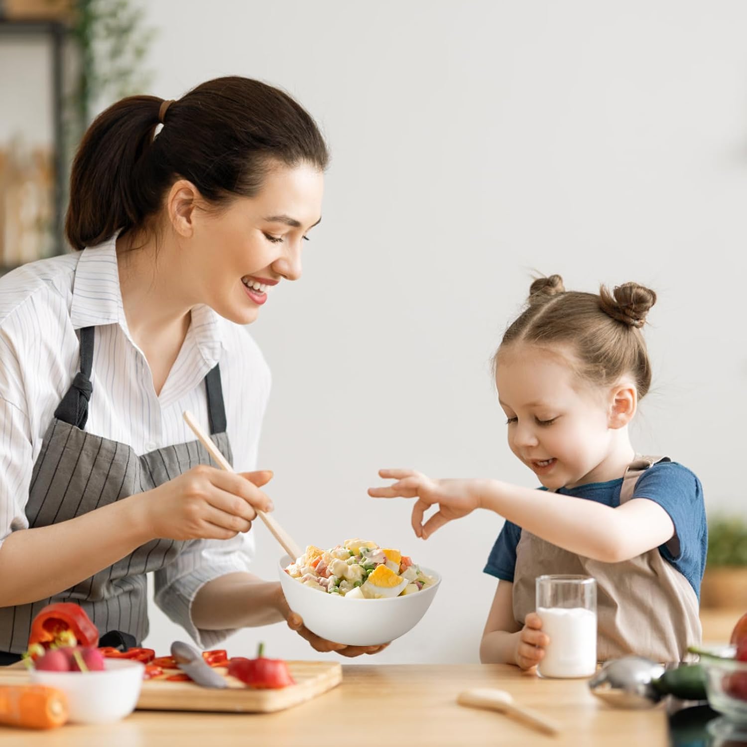 - Versatility Bowls Set for Kitchen: 6.2inch is the right size for daily use, it can be used as serving bowls for small appetizers, sauces, dips, etc. Also perfect for a variety of food, salad, soup, oatmeal, rice, snack, pasta dishes, ice cream etc. The capacity 24 ounce is perfect for individual servings or sharing dishes at the dinner table.