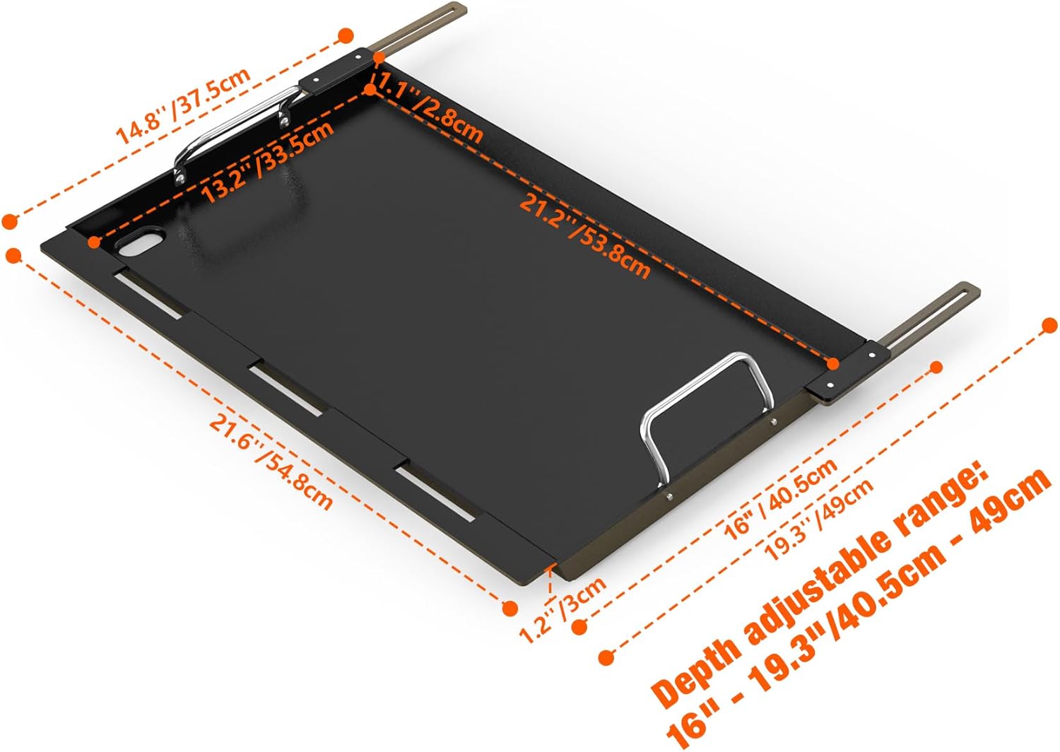 - Retractable Stands: Equipped with two retractable stands to fit 4-burner gas grills with different depths. Griddle depth adjustable from 16" - 19.2". Please measure the depth of your grill's cooking area before purchasing.