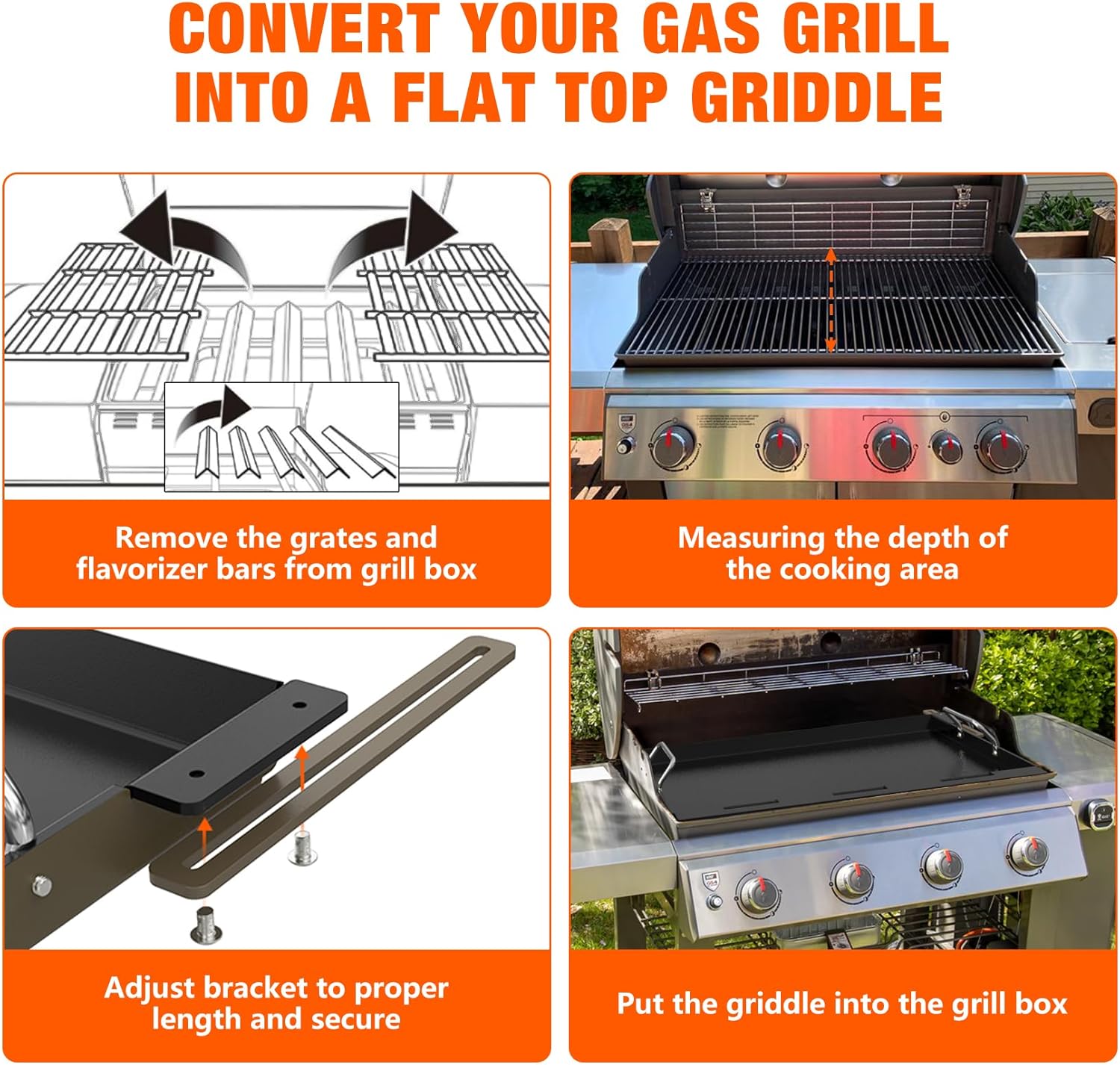 - From Grill to Griddle: Easily convert your grill's entire grilling surface into a full size flat top griddle, enjoy the best of both worlds without adding another grill.