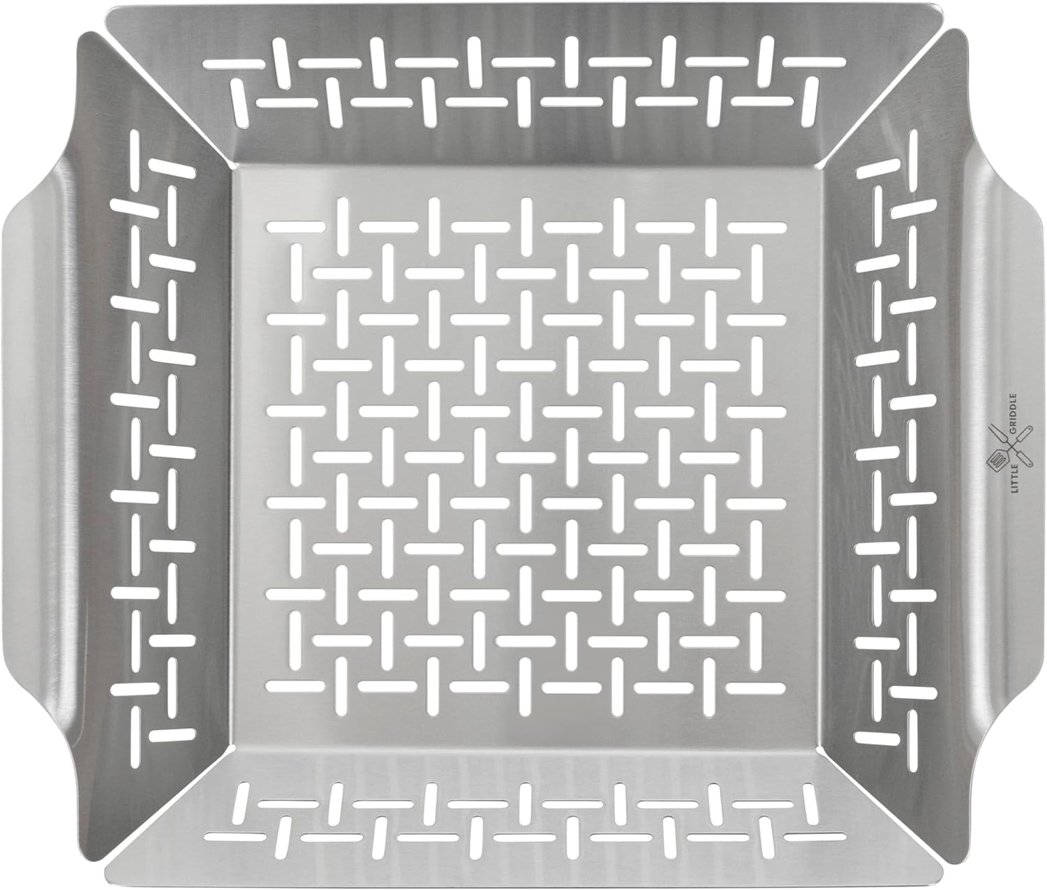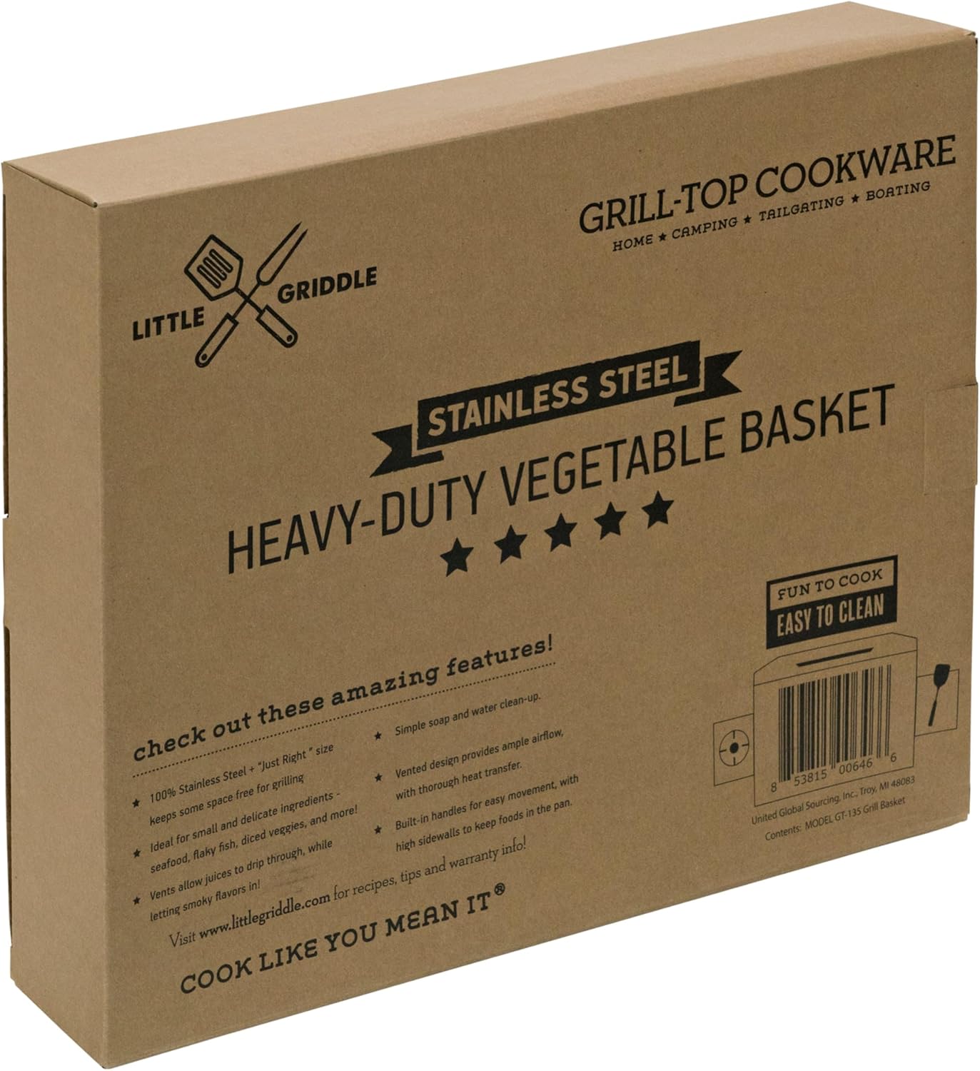 LITTLE GRIDDLE - GT-135 Grill Basket, High sidewalls with built-in handles, Heavy Duty, Stainless Steel Material and Vented Design, Durable and Easy to Clean - Silver